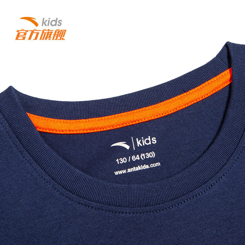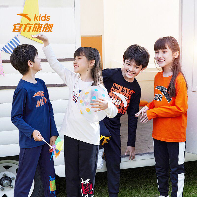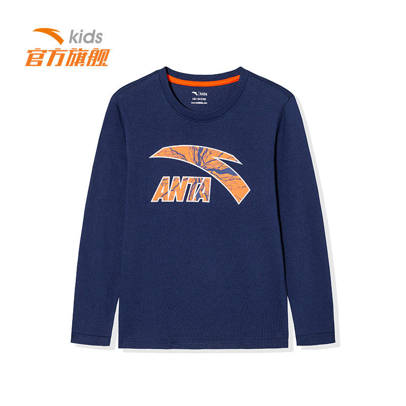 Anta Guan Official Web Flagship Children's Spring Autumn Season Boy Dress Long Sleeve Needle Weasel-length Sleeves T-shirt Hooded Sweatshirt Sport Blouse