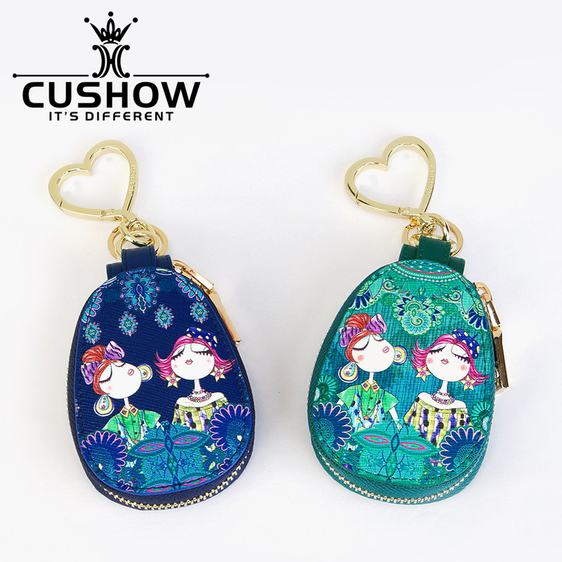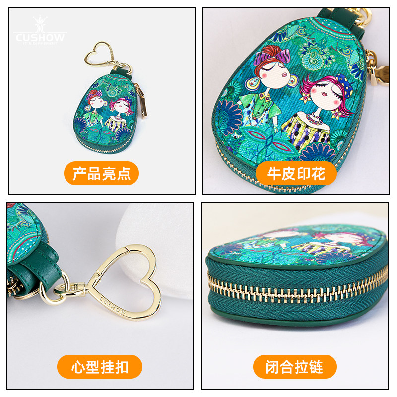 Kaxiu fashion printing leather zipper key bag 2022 new multi-purpose cute leather pendant car key chain