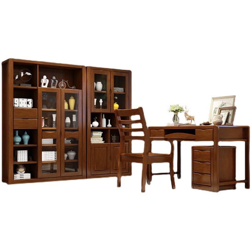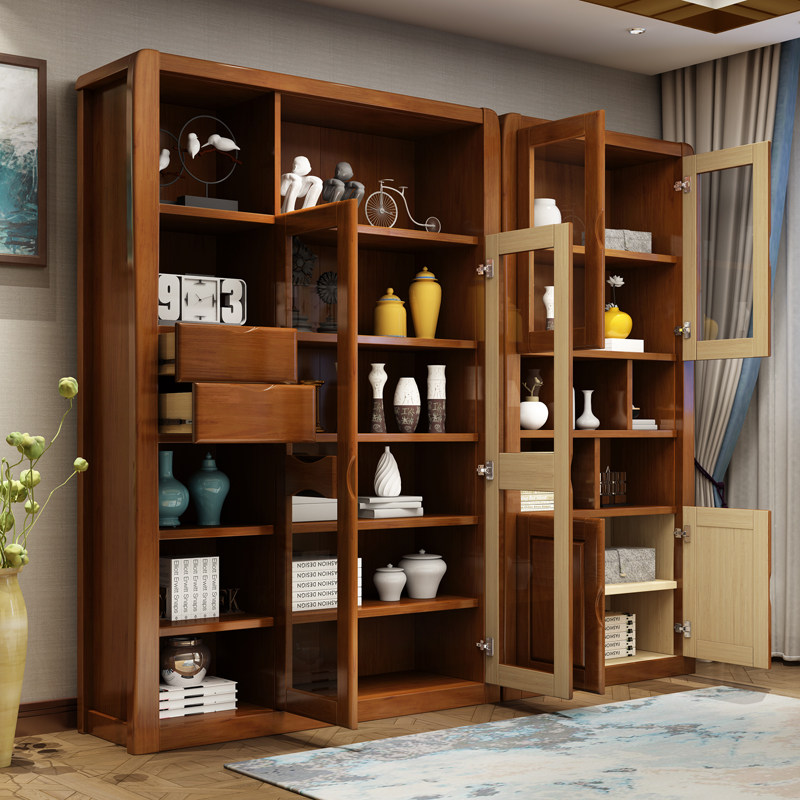 Chinese solid wood bookcase 2 doors 3 doors 4 doors 5 doors bookcase office desk suit combination with glass door floor home
