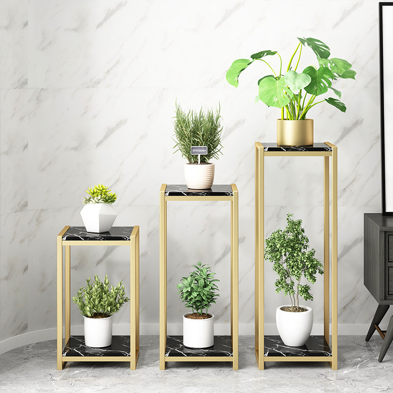 Nordic flower stand wrought iron marble floor-to-ceiling decorative rack indoor gold Ge flower pot rack living room simple modern rack