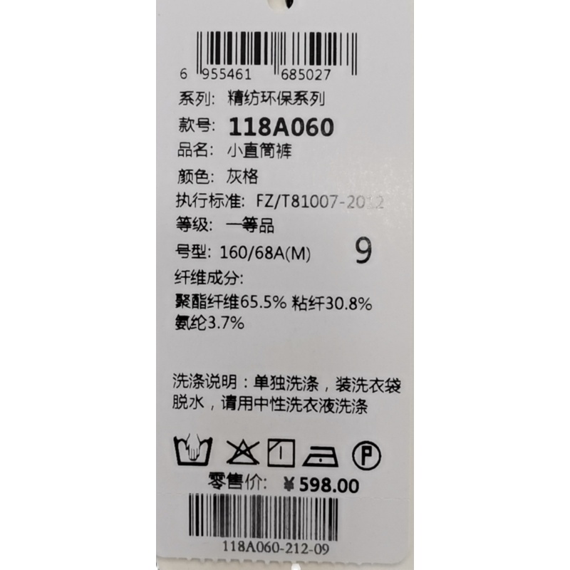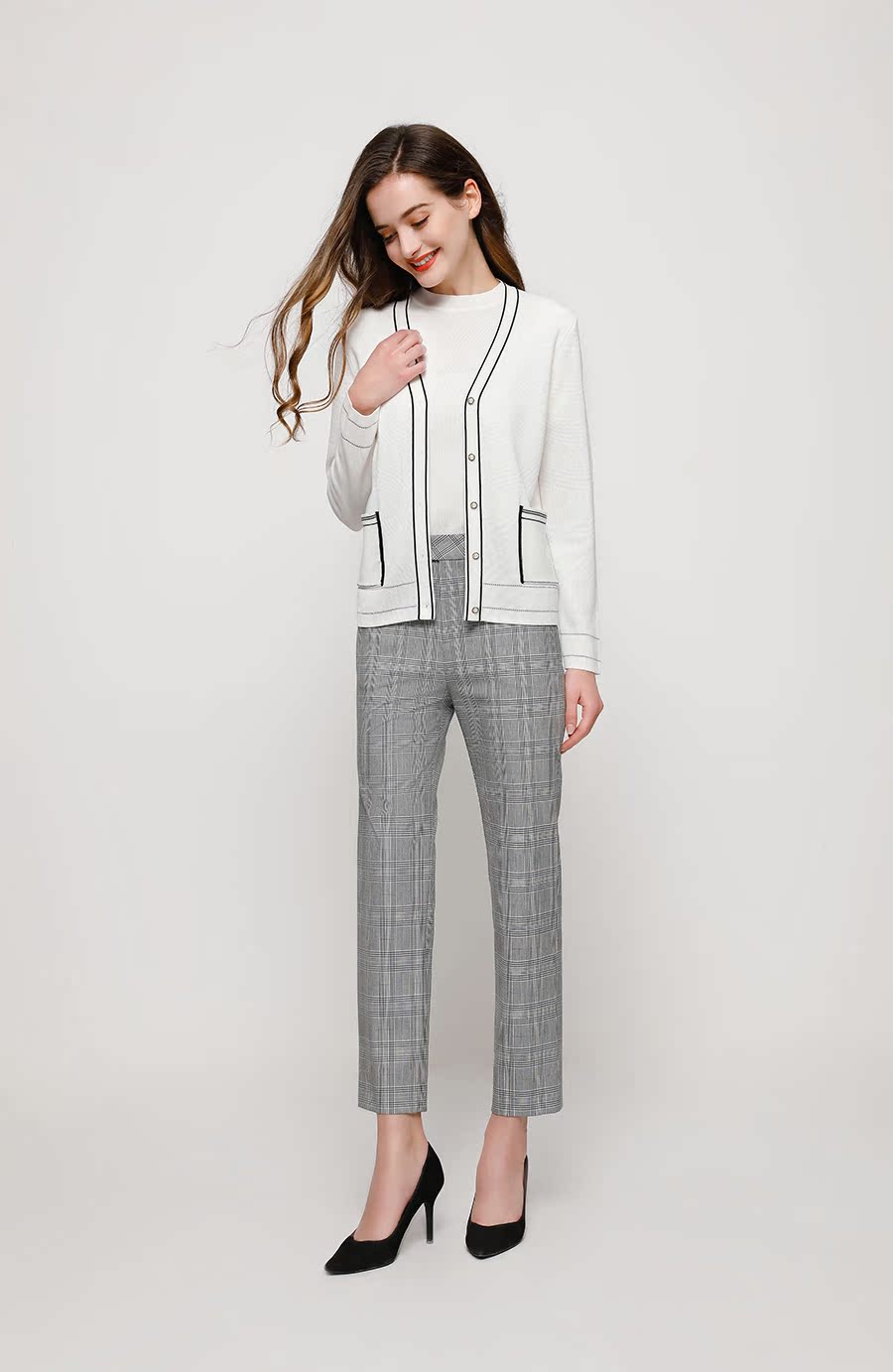 Ming women's pants 118A060 plaid small straight pants ladies ninth pants slim Taiwan Ming 2021 spring counter