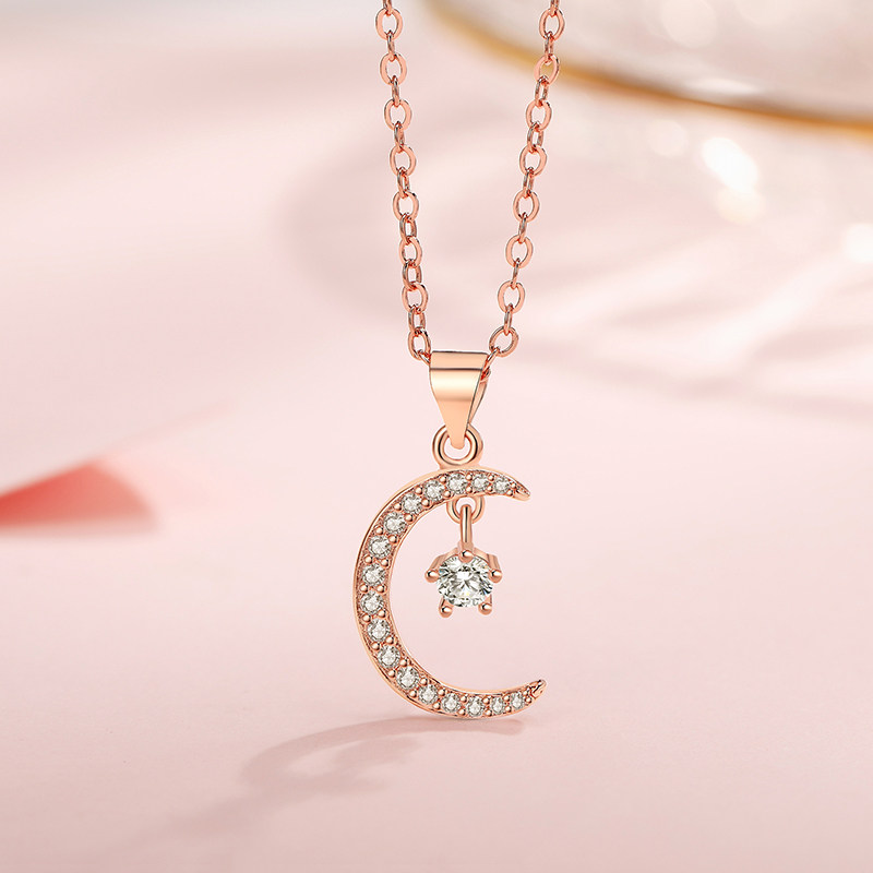 Octagram Pendant Necklace White Gold Octagram Pendant Necklace Rose Gold Round Double Ring Pendant Necklace Rose Gold Bow Pendant Necklace Rose Gold Star and Moon Pendant Necklace Rose Gold Heart