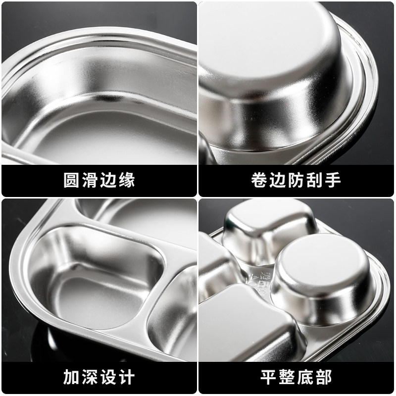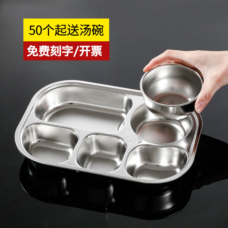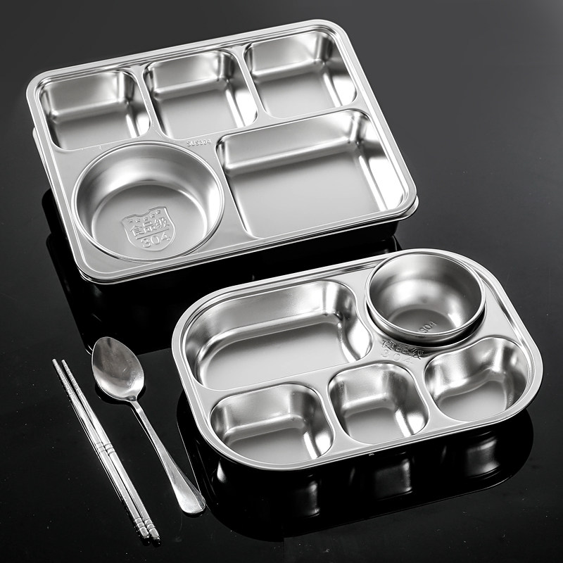 304 stainless steel divided plate student children kindergarten canteen meal plate household four-grid five-grid tableware set