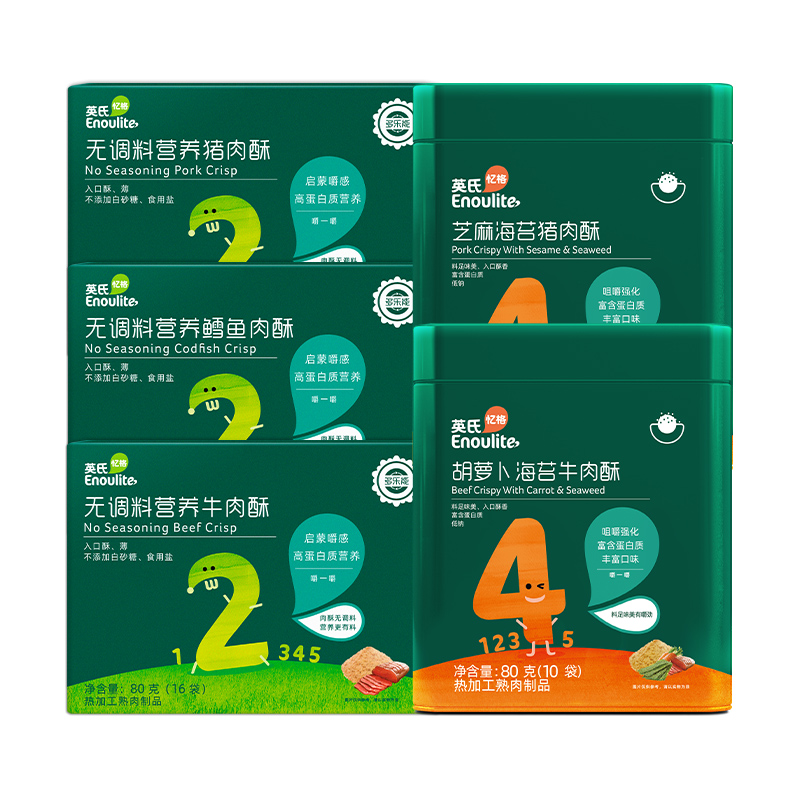 Nutritious pork crisp * 1 box of nutritious cod meat crisp * 1 box of nutritious beef crisp * 1 box of sesame seaweed pork crisp * 1 box of carrot seaweed beef crisp * 1 box