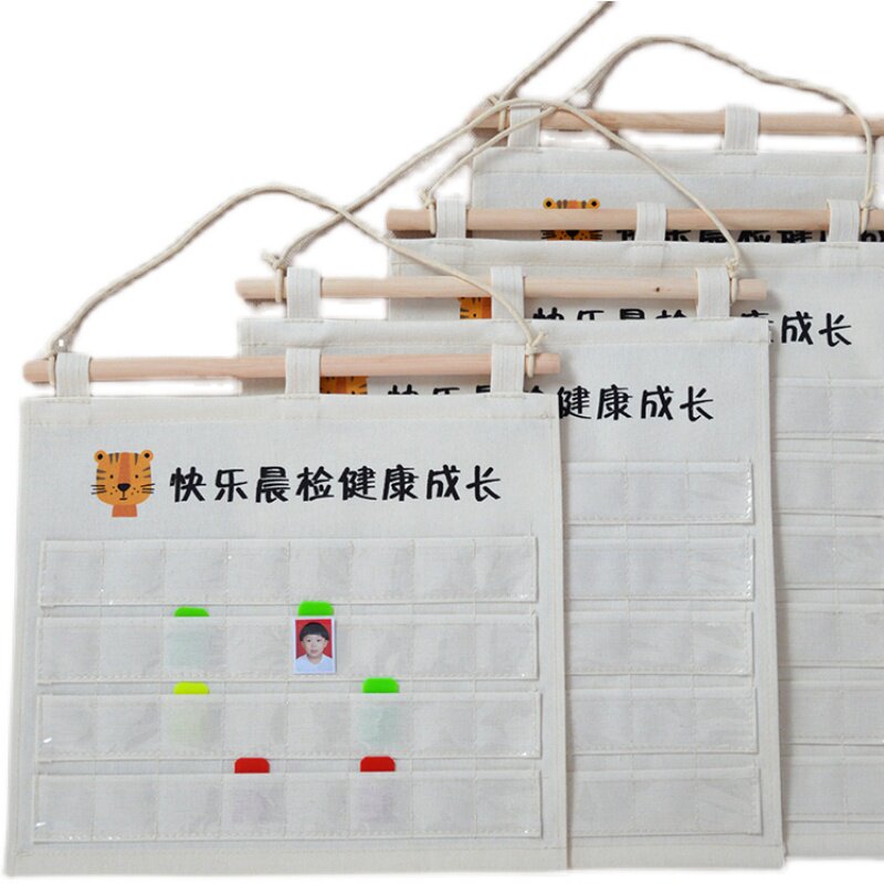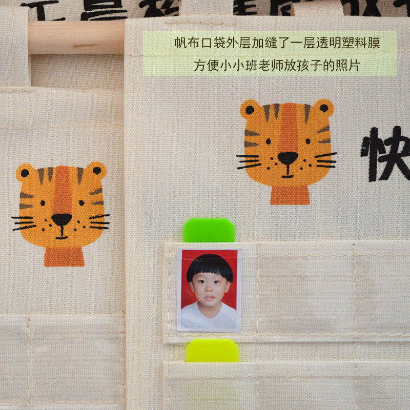 Washable waterproof canvas Kindergarten morning inspection card bag with transparent film on the outer layer can be inserted into the photo small class standard