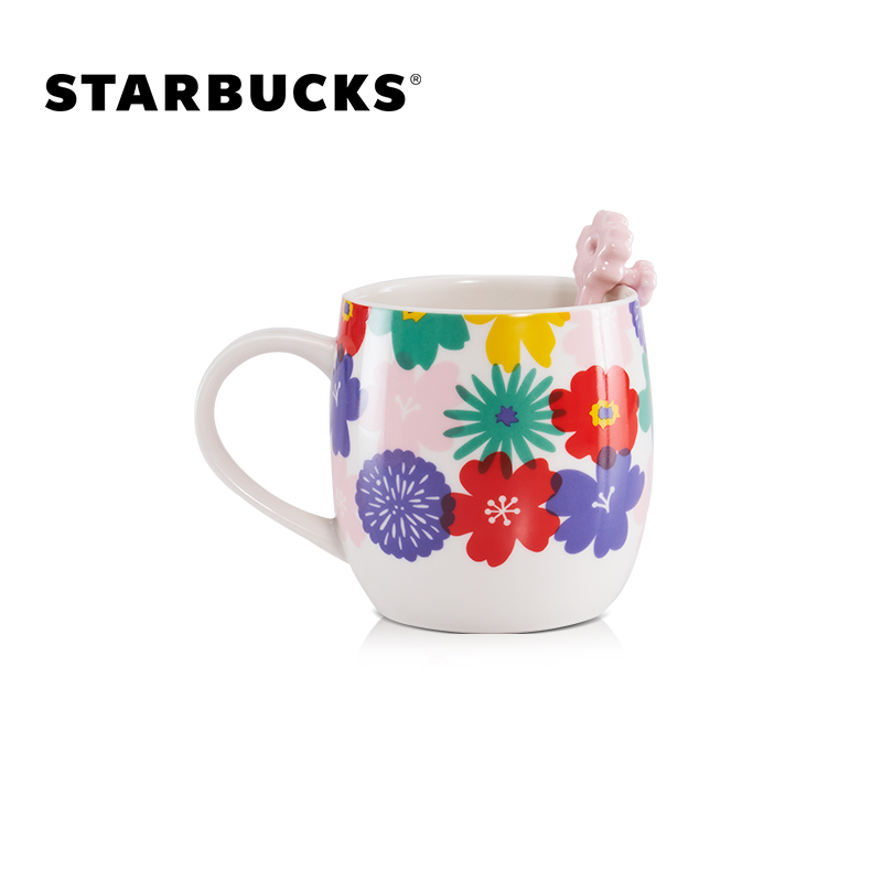 Starbucks 414ml floral mug with stirring spoon simple office water cup Tmall selection