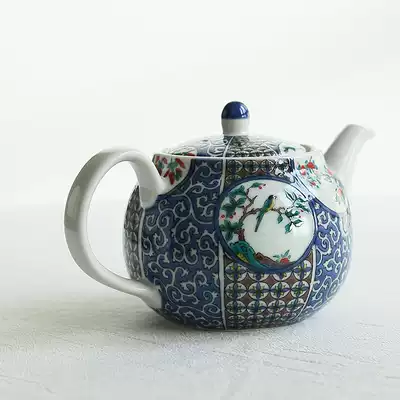Spot Japan imported Jiugu burning Phoenix pill pattern flower and bird picture back hand teapot stainless steel filter ceramic tea ware