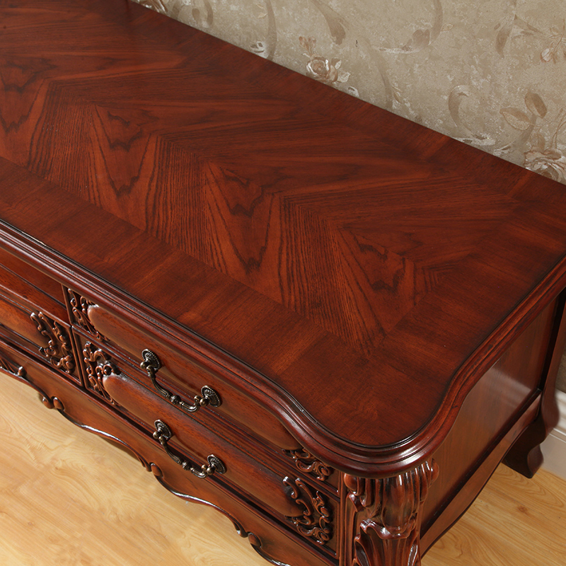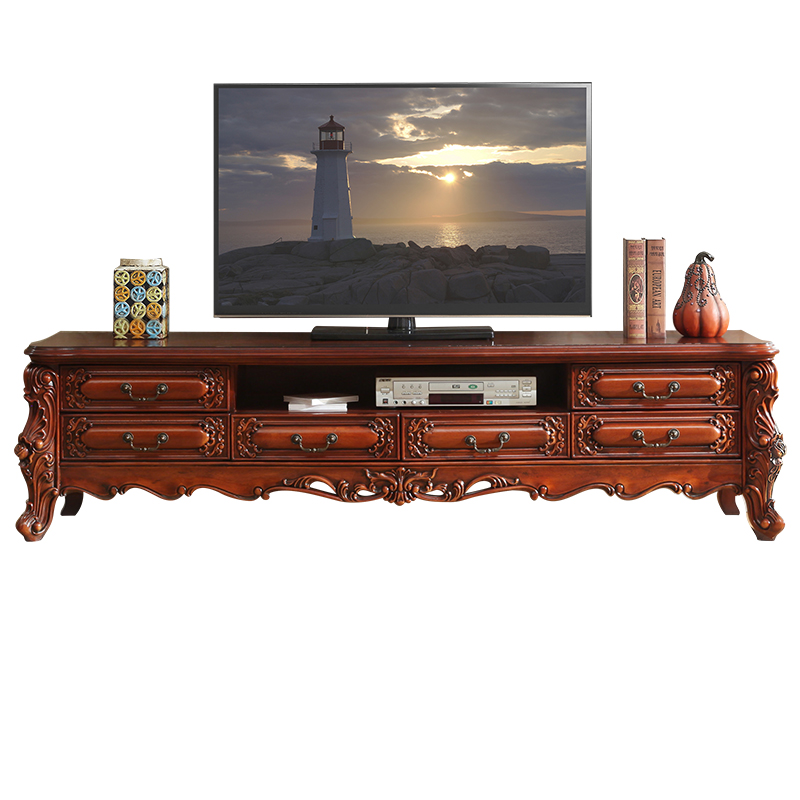 American-style solid wood TV cabinet 2 meters 2 2 meters 2 4 meters European luxury carved living room TV cabinet floor cabinet is short