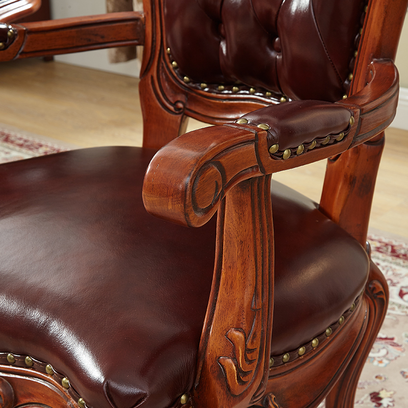 Xisheng furniture European-style solid wood leather desk and chair American-style carved leisure chair visitor negotiation chair office chair