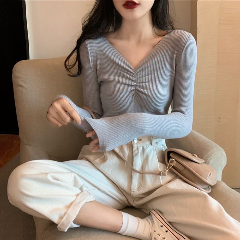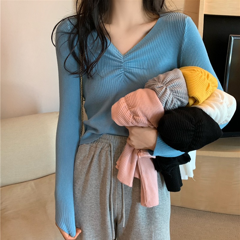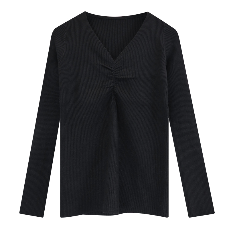 Knit women Spring model 2022 New V collar thin temperament black long sleeve base shirt design sense niche top