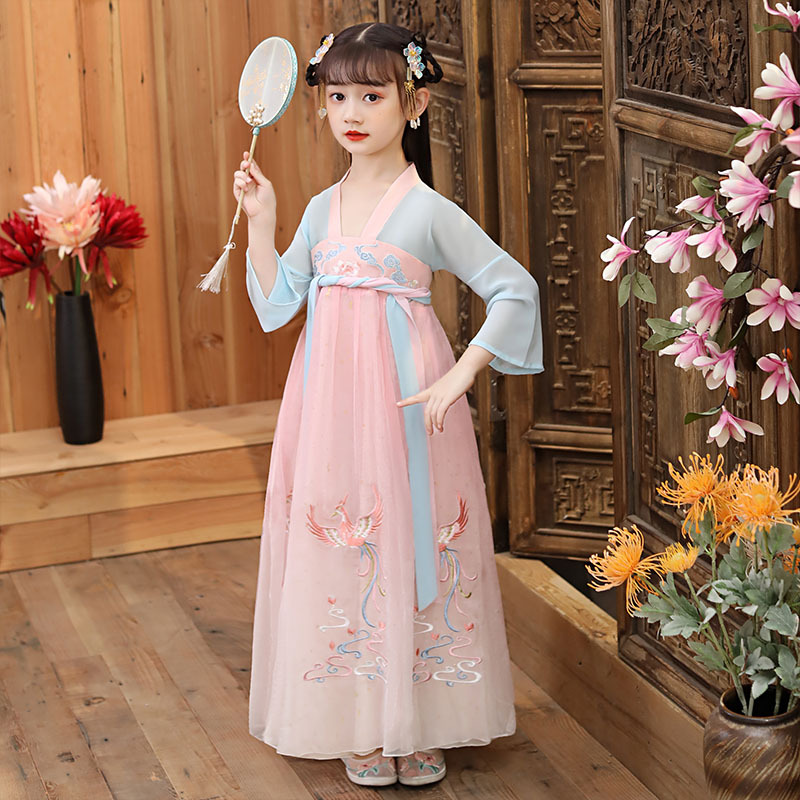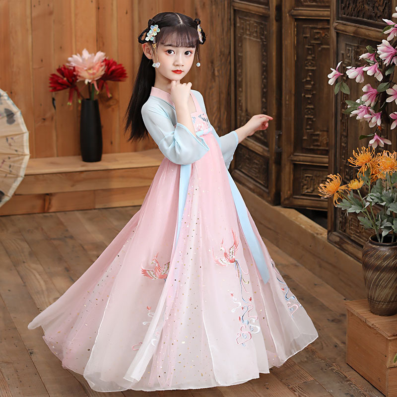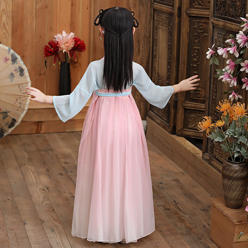(The girl's hanfu) Spring-autumn ultra-fairy-coughed children Chinese Wind Down dress Skirt Girl Snow-spinning Ocean Dress summer clothes