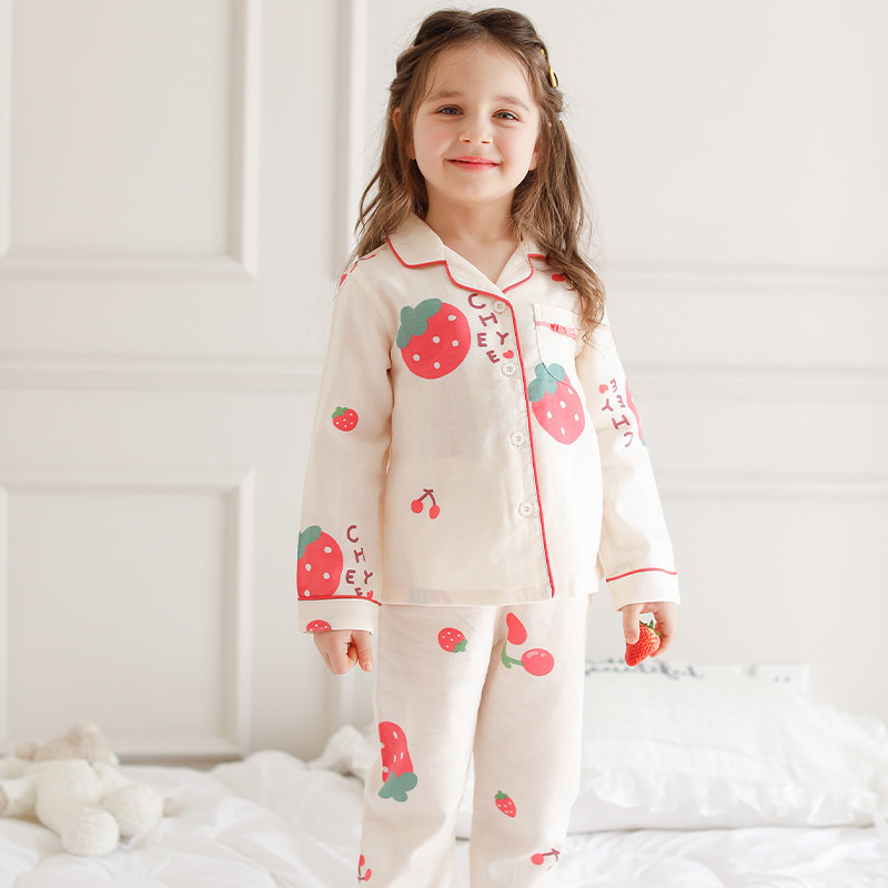 Strawberry Cherry Girl (children's section) Summer slim fit Air-conditioned Room Wearing Strawberry Cherry Girl (Mom's section) Summer thin Suitable Air-conditioned Room Wearing 100% Pure Cotton Double-layer gauze