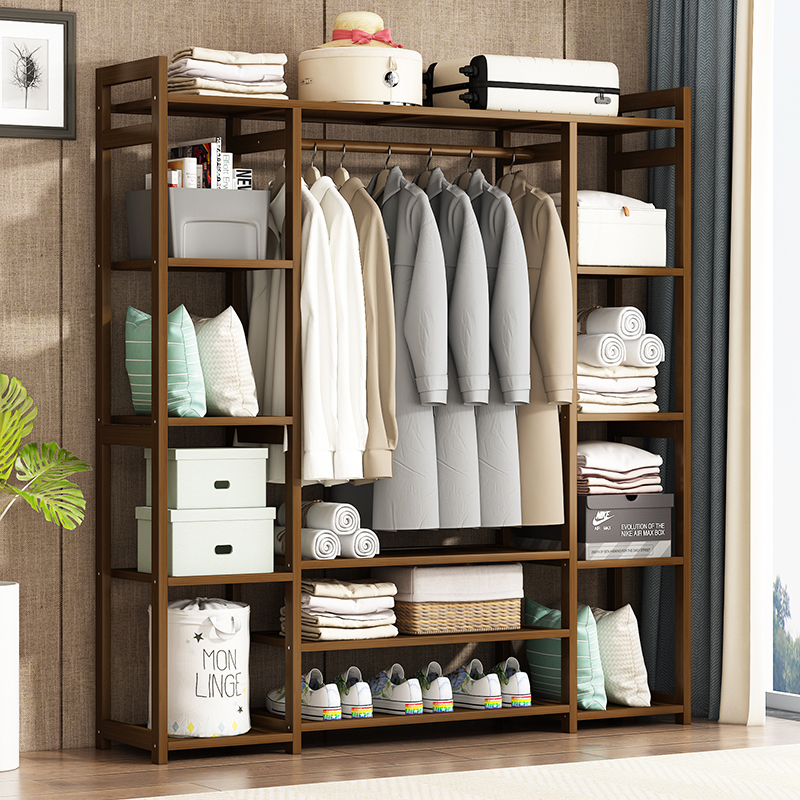Solid wood floor clothes hat rack Home bedroom hanging clothes hanger Sub simple clothes vertical shelving minimalist Modern Wardrobe