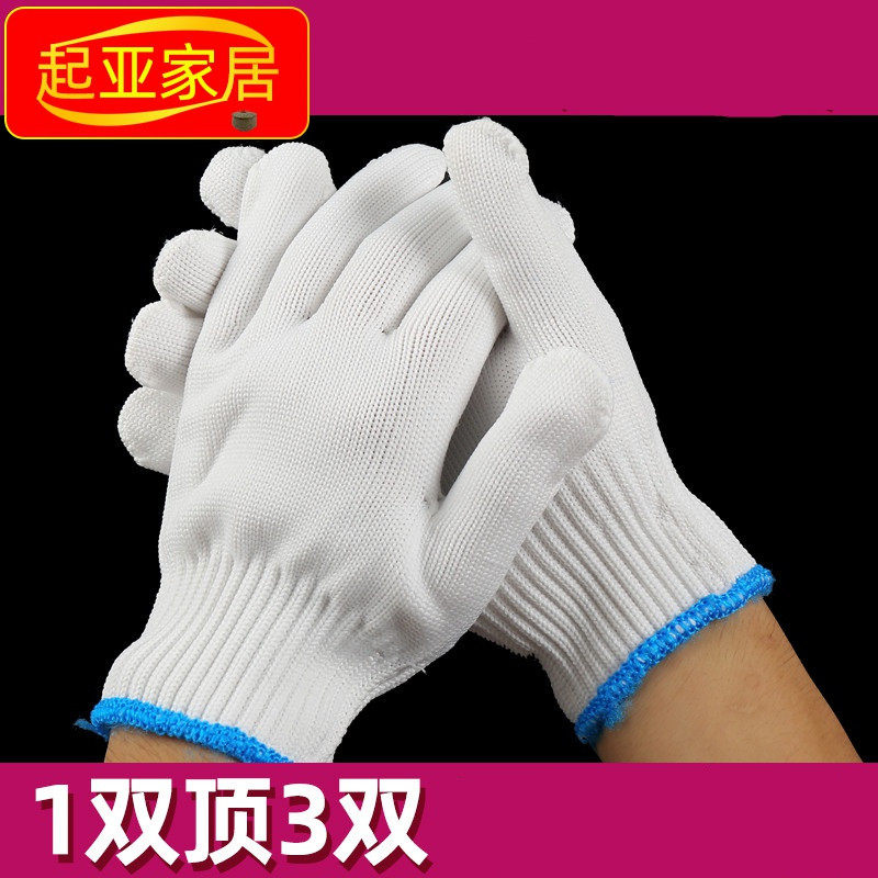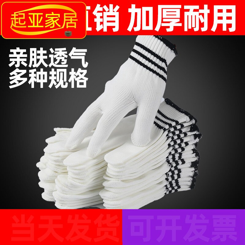 Gloves labor insurance nylon cotton thread gloves thickened wear-resistant warm white gloves repair work site work men and women park