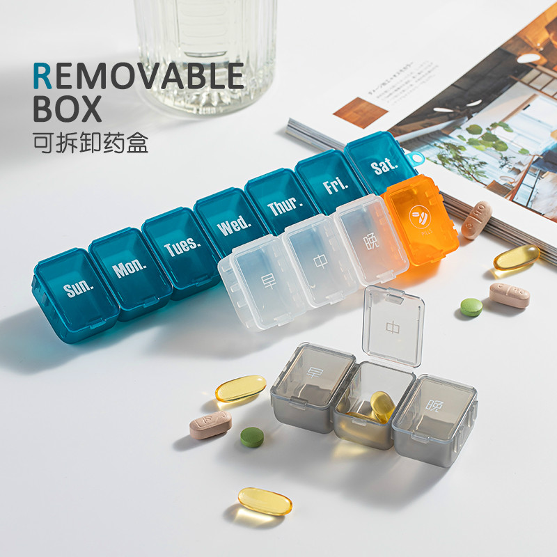 Small medicine box Daily early middle night old man portable small number Mini a week with 3 g 7 days large capacity storage