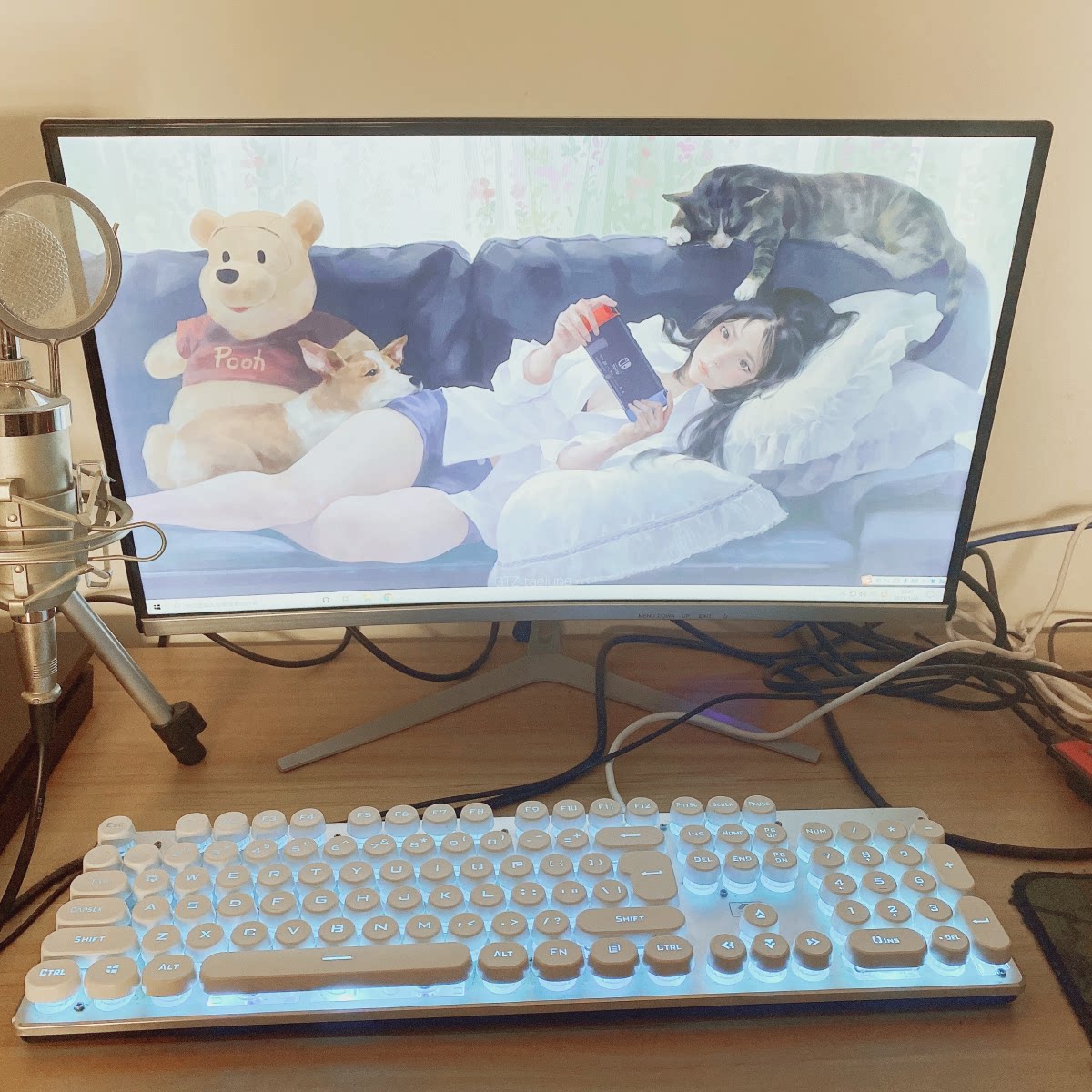 Saibo Punk Polar Ice Blue Round Key Pen Electric Usb External keyboard Mechanical mute Suction Lamp Film