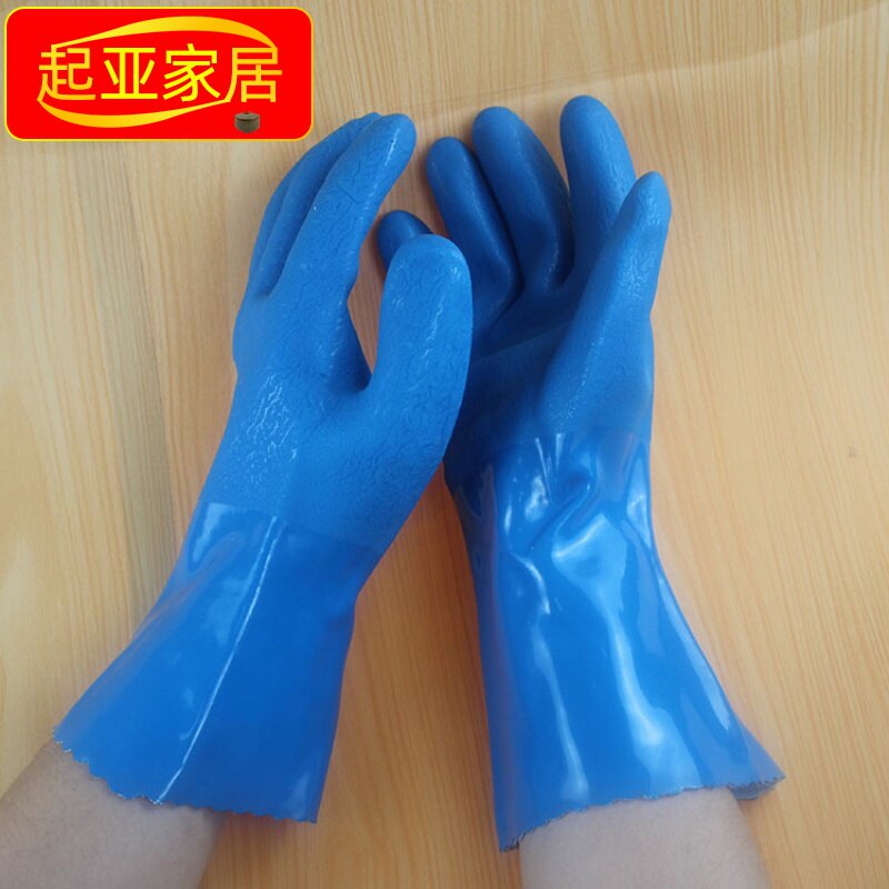 Oil resistant non-slip anti-oil and waterproof labour protection Industrial ship Aquaculture Home cleaning Repair blue thickened gloves