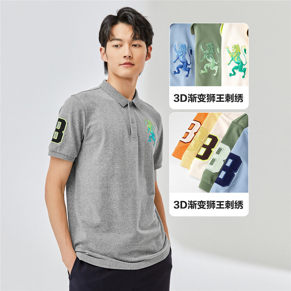 Giordano polo shirt men's 3D lion embroidery short-sleeved POLO stretch piqué Slim Ralph Lauren polo shirt 01011422