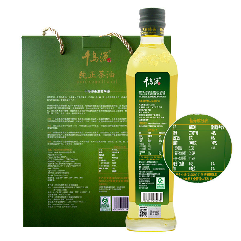 Qiandaoyuan camellia oil gift box pure tea oil 500ml*2 tea seed edible oil New Year gift box welfare group purchase
