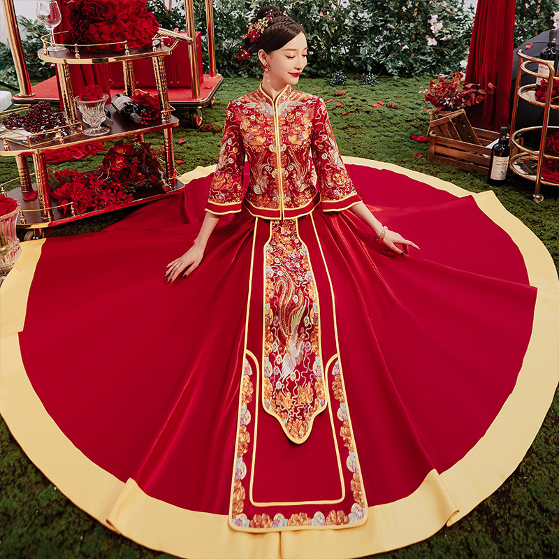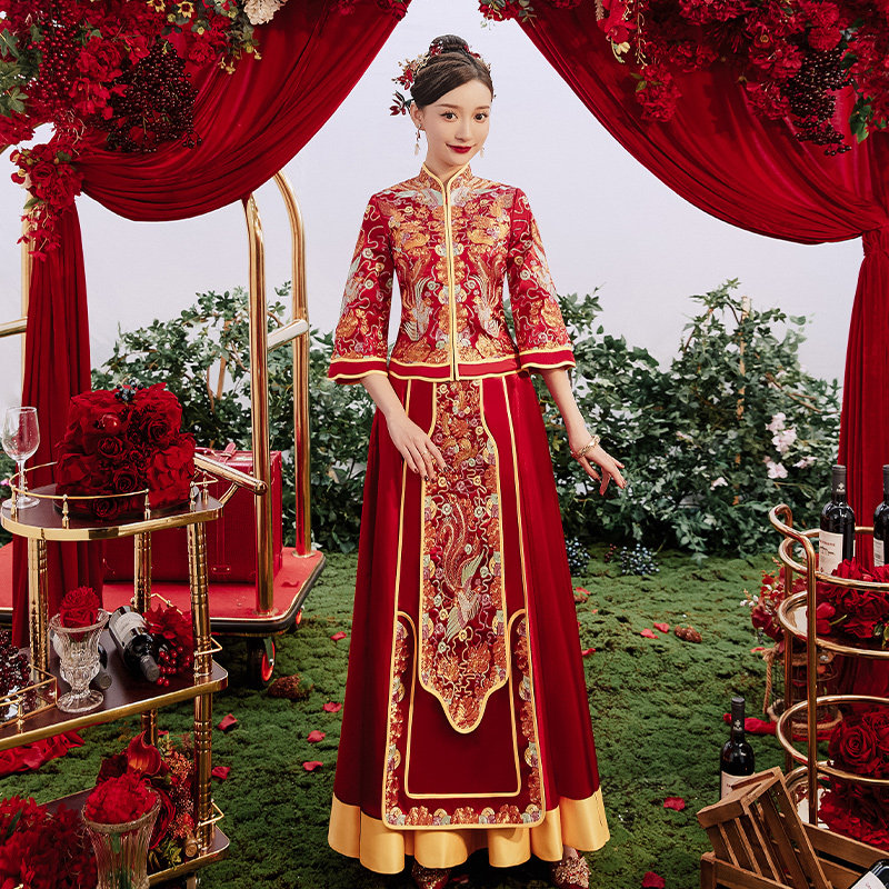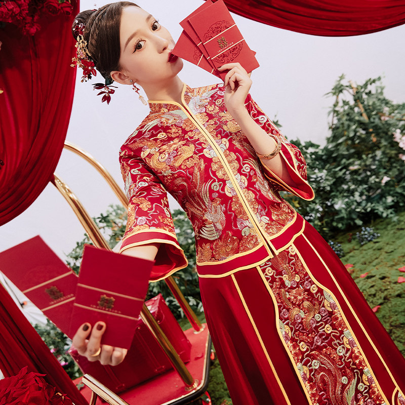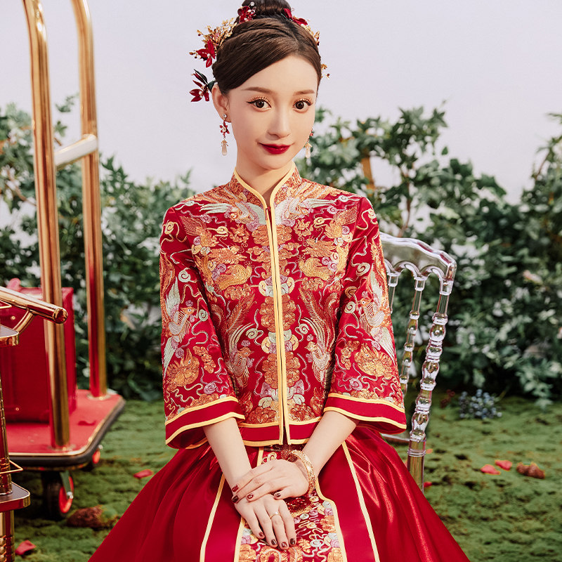 2021 new wedding show thin dragon and phoenix jacket Chinese Xiu Wo service large size retro toasts service out of the cabinet summer thin