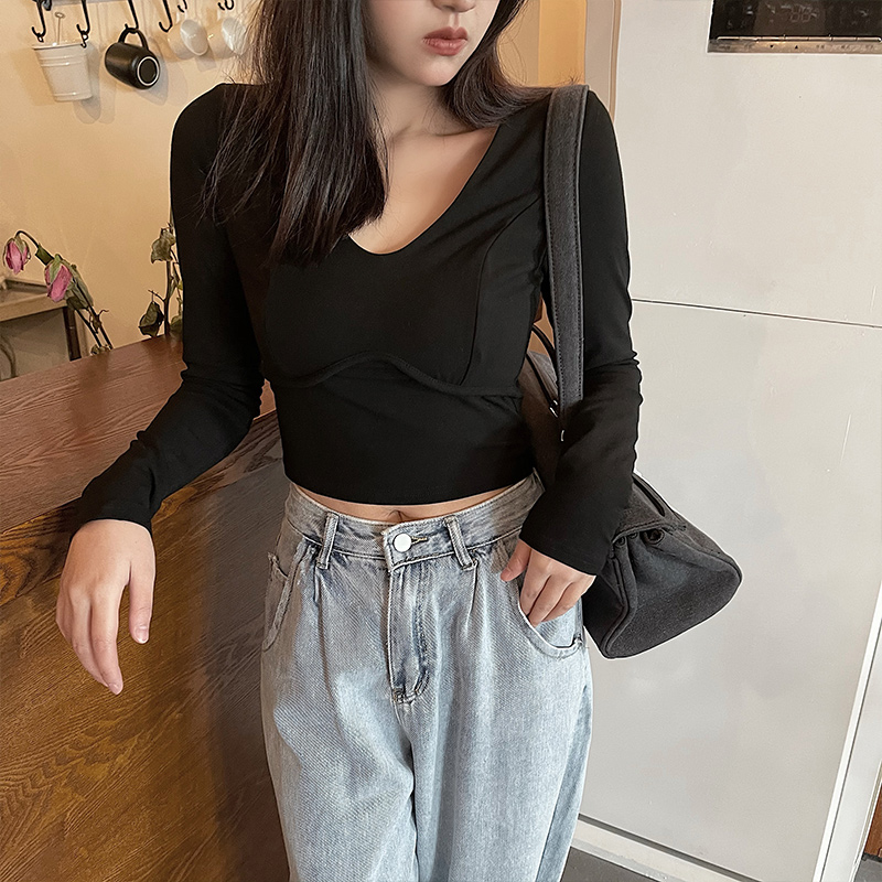 White short - sleeved t shirt in spring and fall 2021 new Han - Edition V collar body appears thin cotton fashion blouse
