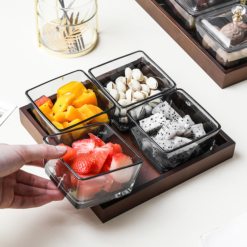 Dark brown bamboo and wood-two-grid snack tray-no lid (send silver fruit fork) Dark Brown bamboo and wood-three-grid snack tray-no lid (send silver fruit fork) Dark Brown bamboo and wood-four-grid snack tray-no lid