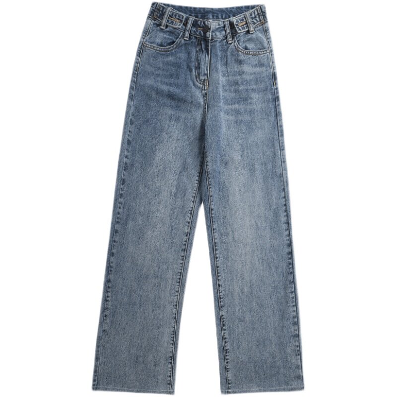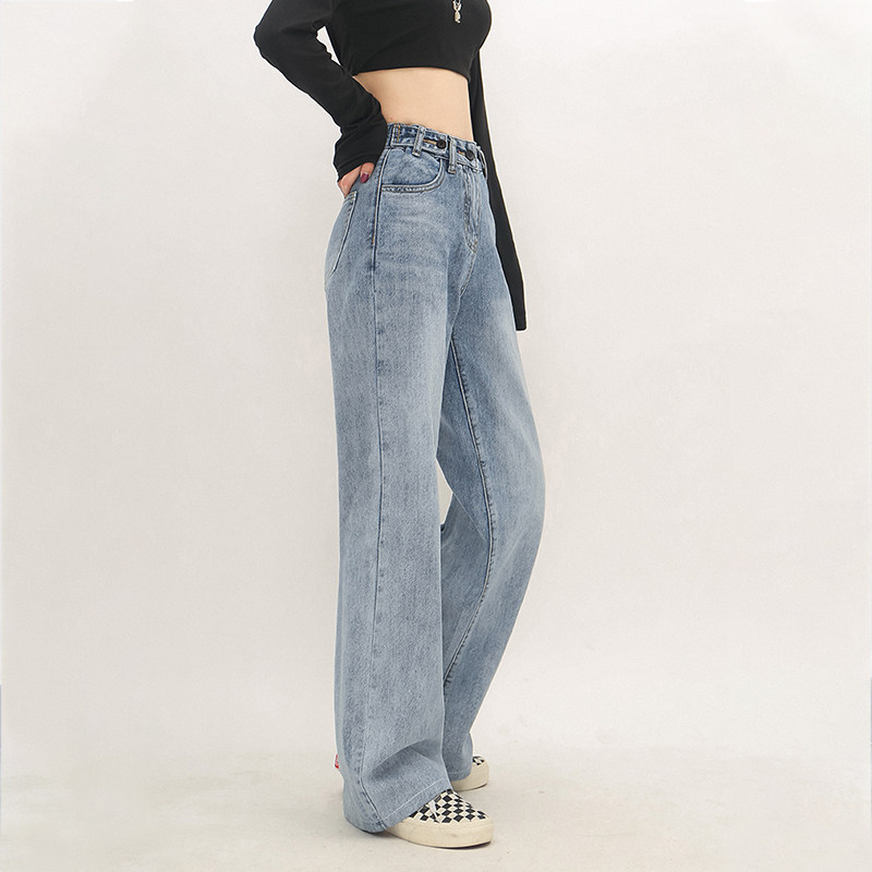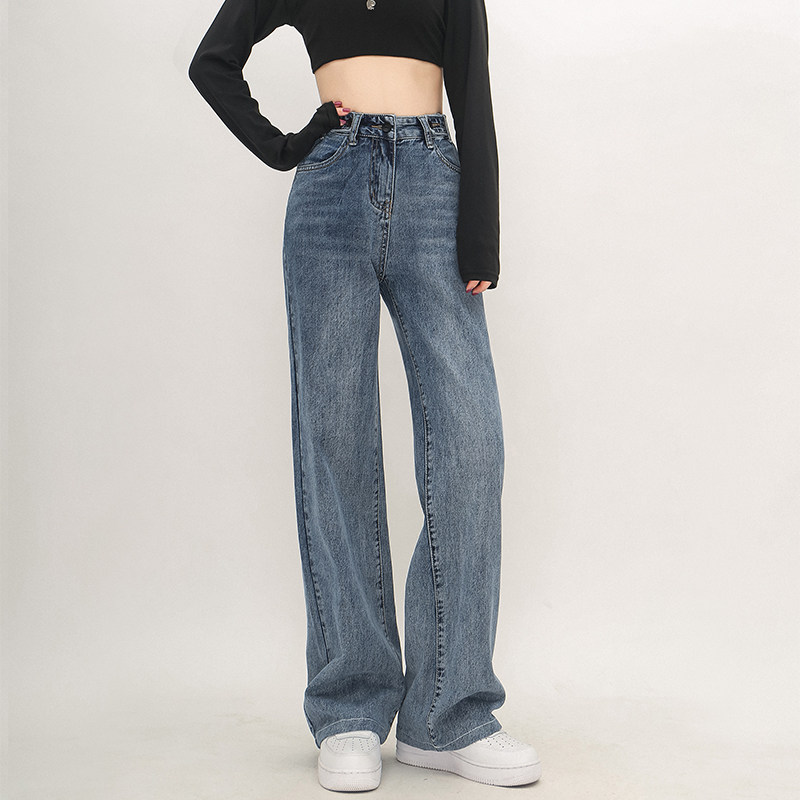 Large size wide legged jeans woman 2022 new fat sister mm shade thin pants high waist straight tube trousers