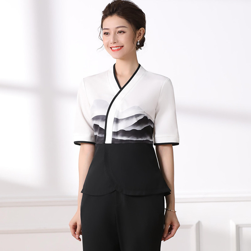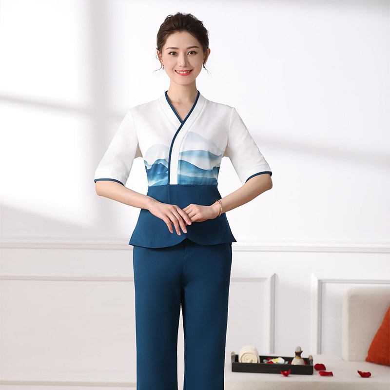 Tangyue spring and summer new foot bath technician work clothes women's foot massage shop health hall foot bath suit contrast printing middle sleeve
