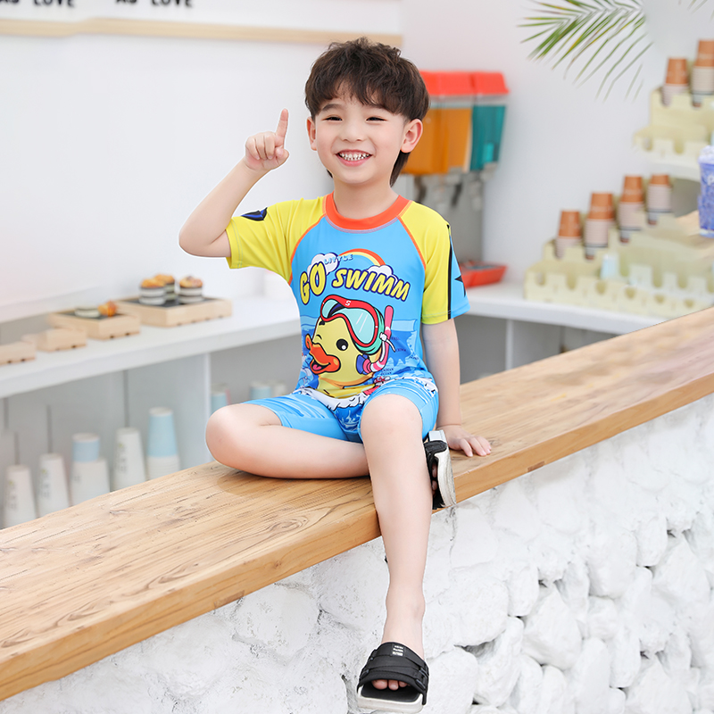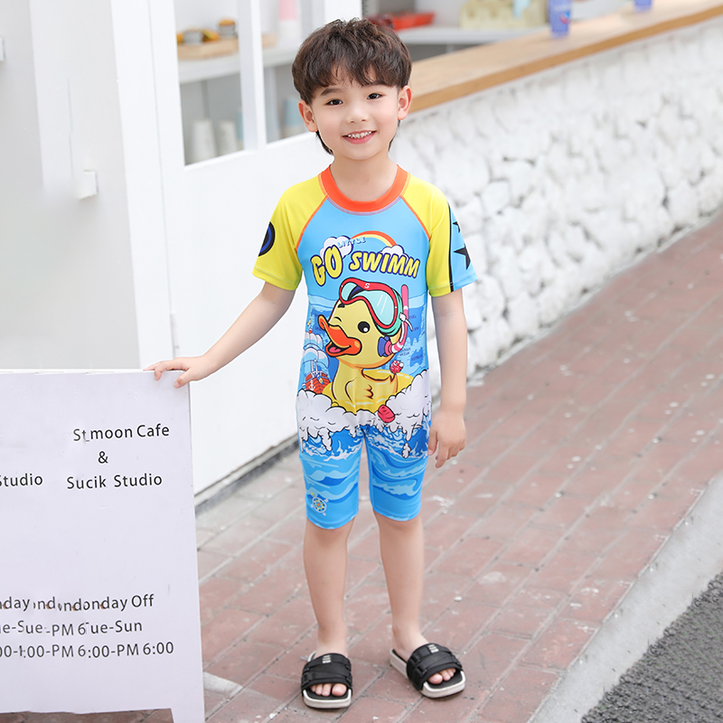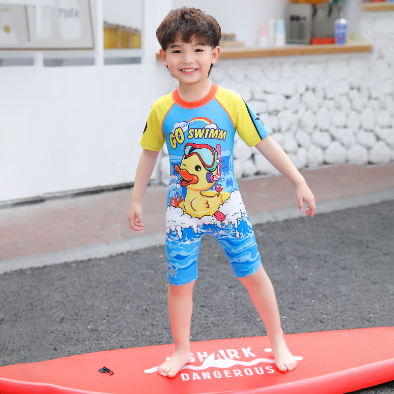 Children's one-piece swimsuit Sunscreen quick-drying breathable small, medium and large children's hot spring swimsuit Cute little yellow duck boy swimsuit