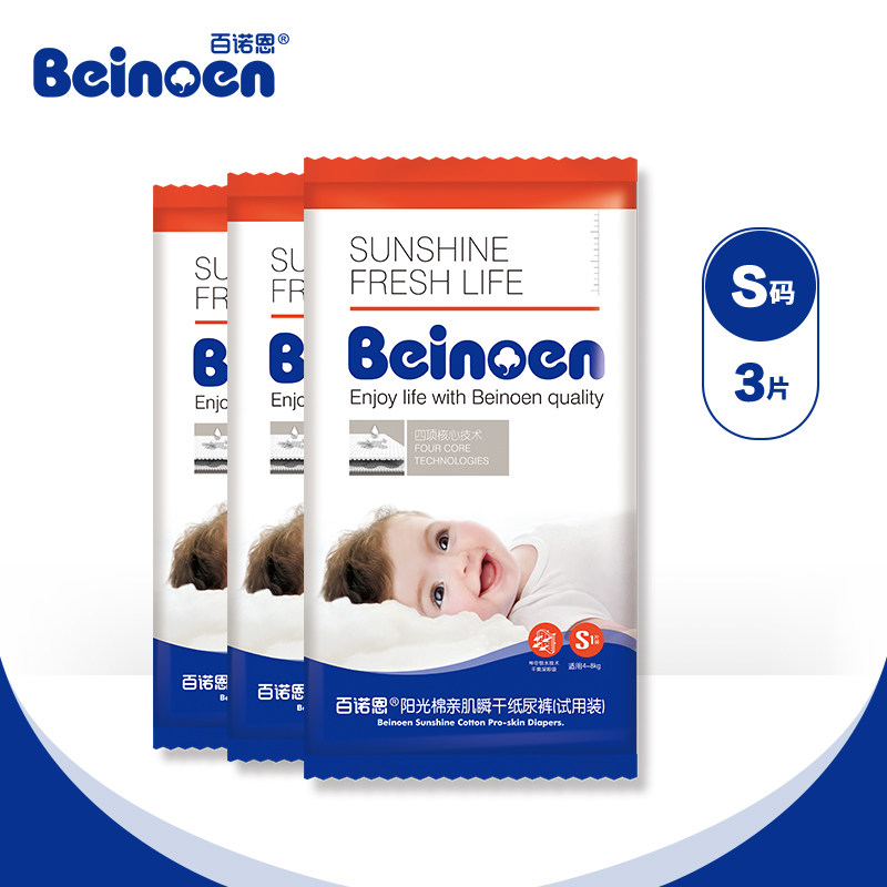 Beinoen 100 Noen Baby Paper diaper Scode 3 sheets Breathable Paper Diaper Dry baby Comfortable Urine not wet