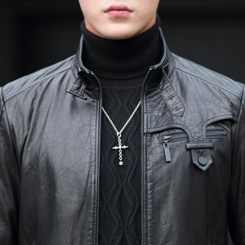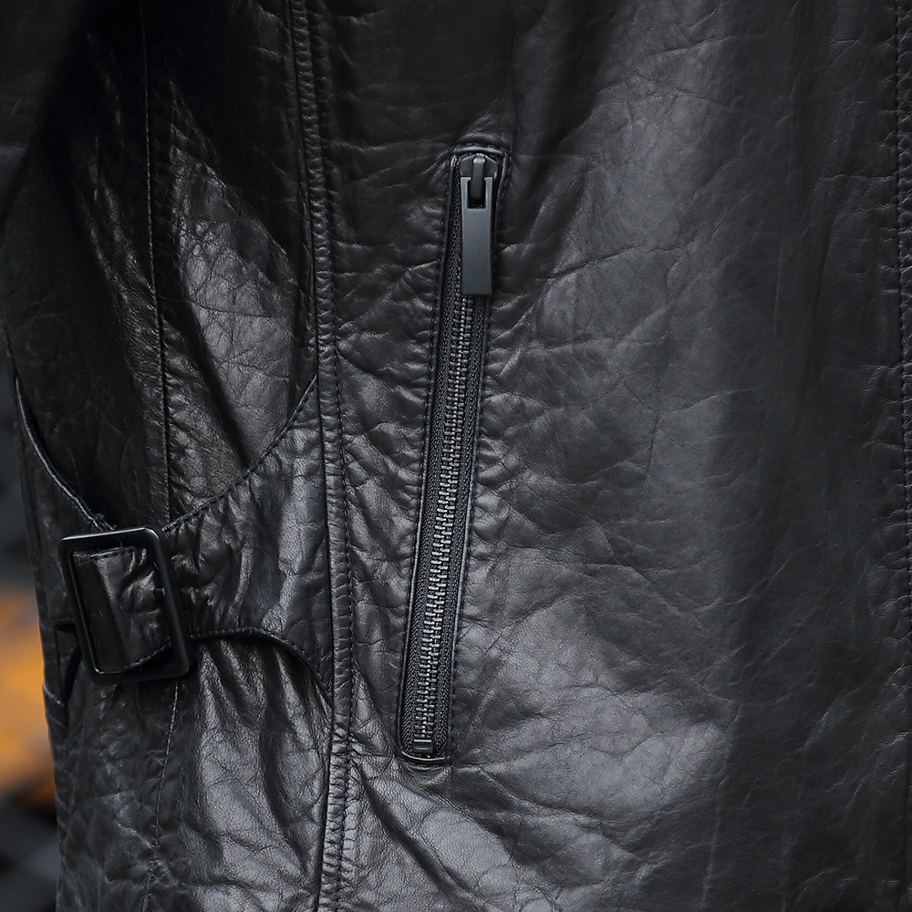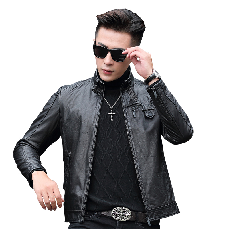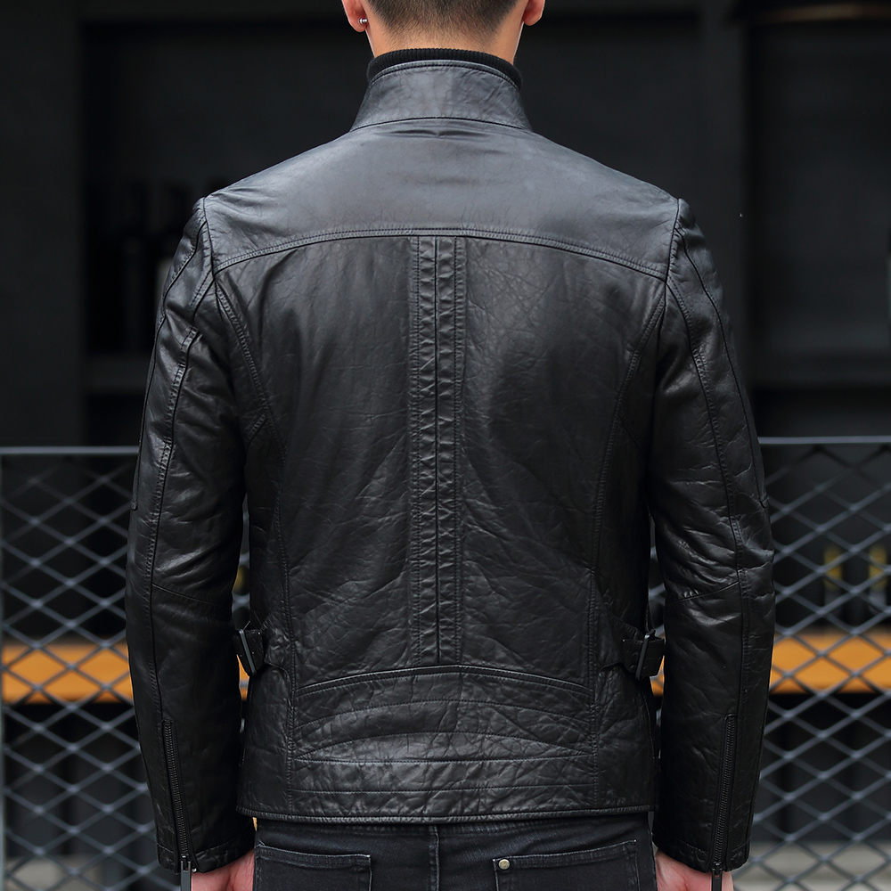 Haining Genuine Leather Men's Sheep Leather Slim Stand Collar Handsome Motorcycle Leather Jacket Short Section Thin Section Youth Coat Trendy