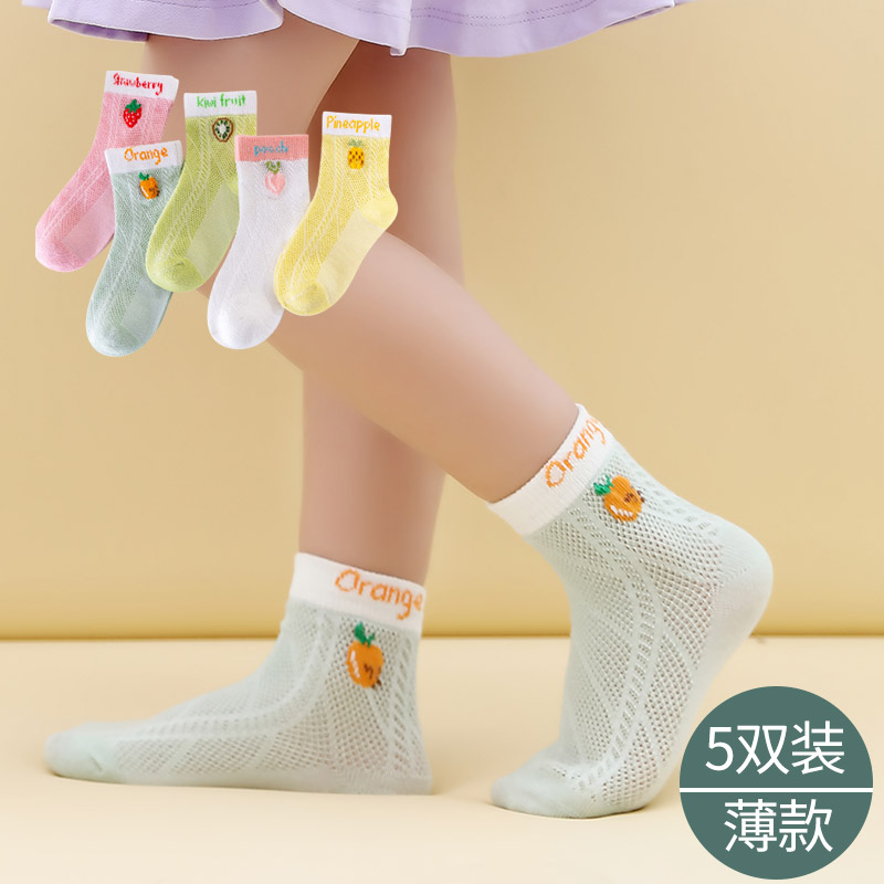 Girls socks thin section children's socks spring and summer spring and autumn mesh breathable cotton princess strawberry children's socks