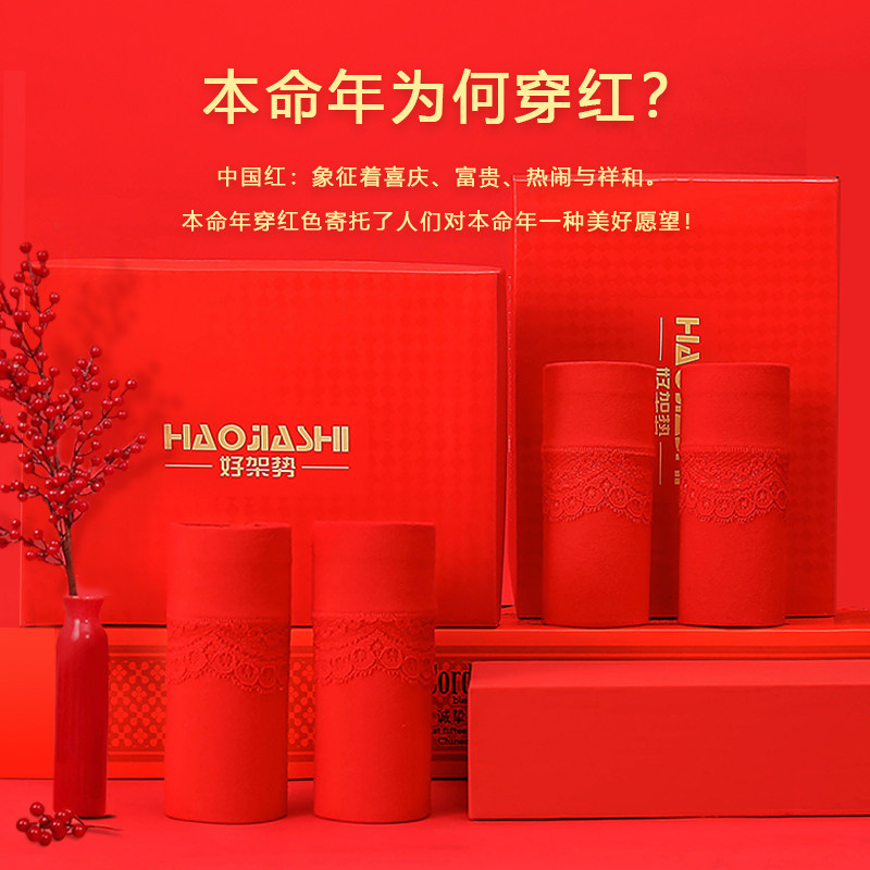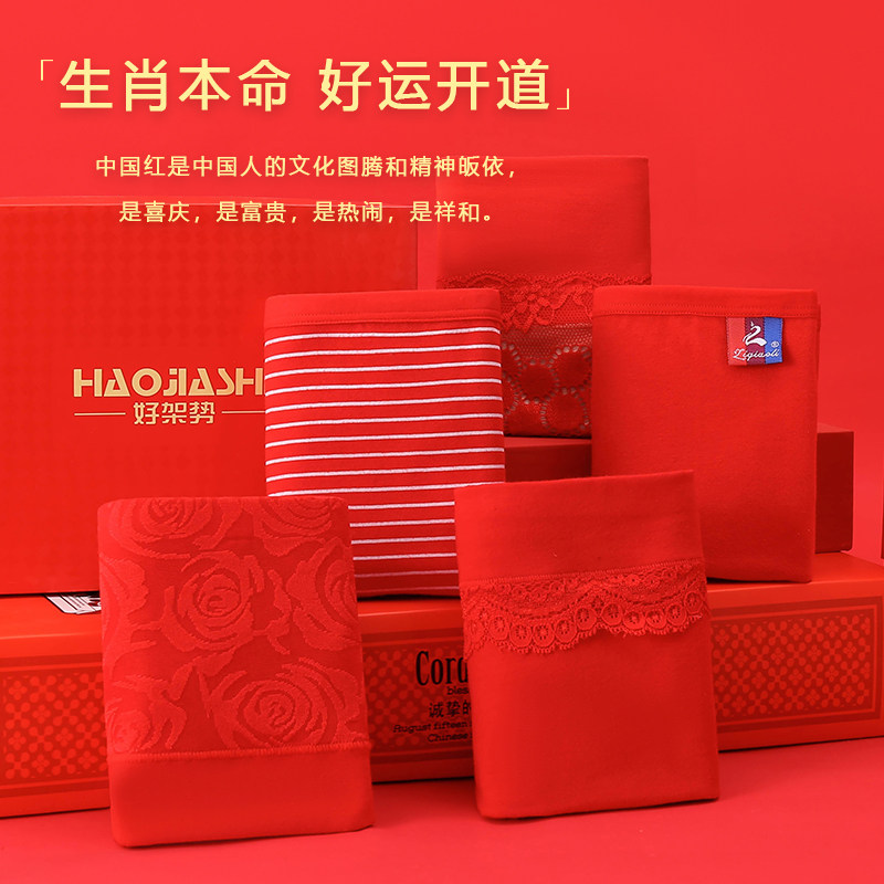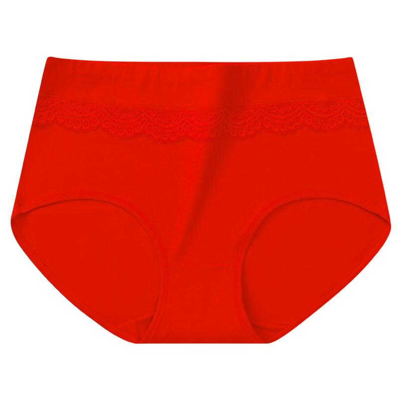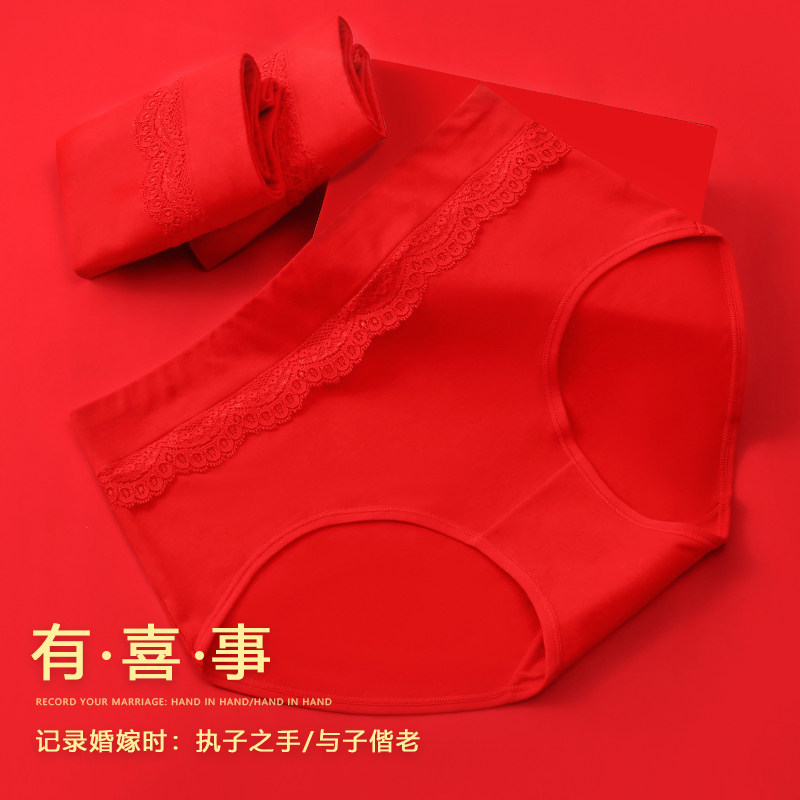 Ladies underwear women's zodiac year big red cotton seamless mid-waist cotton lace breathable festive wedding briefs - Taobao