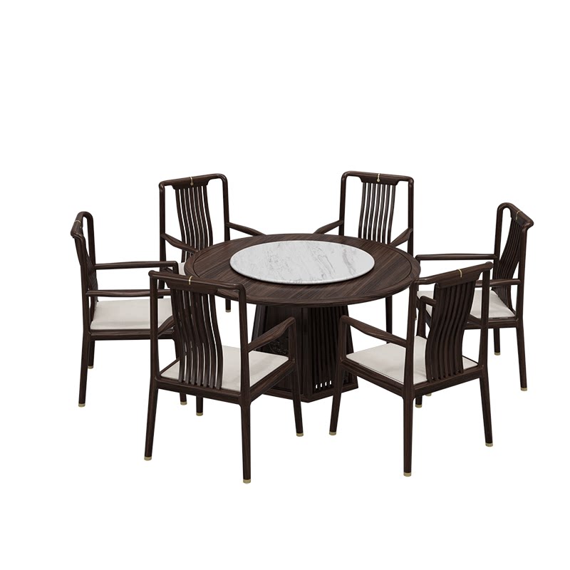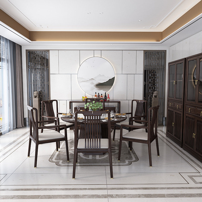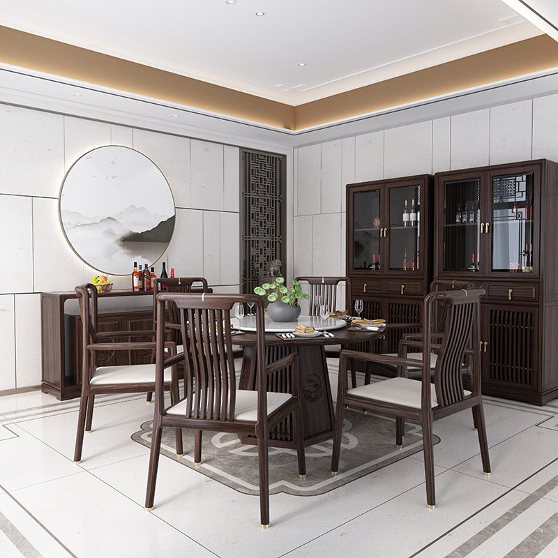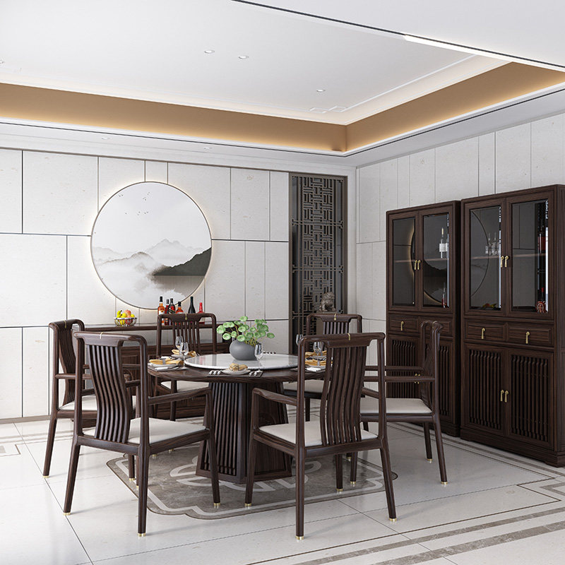 New Chinese style solid wood dining table Modern villa restaurant hotel round dining table chairs sideboard wine cabinet combination of famous furniture