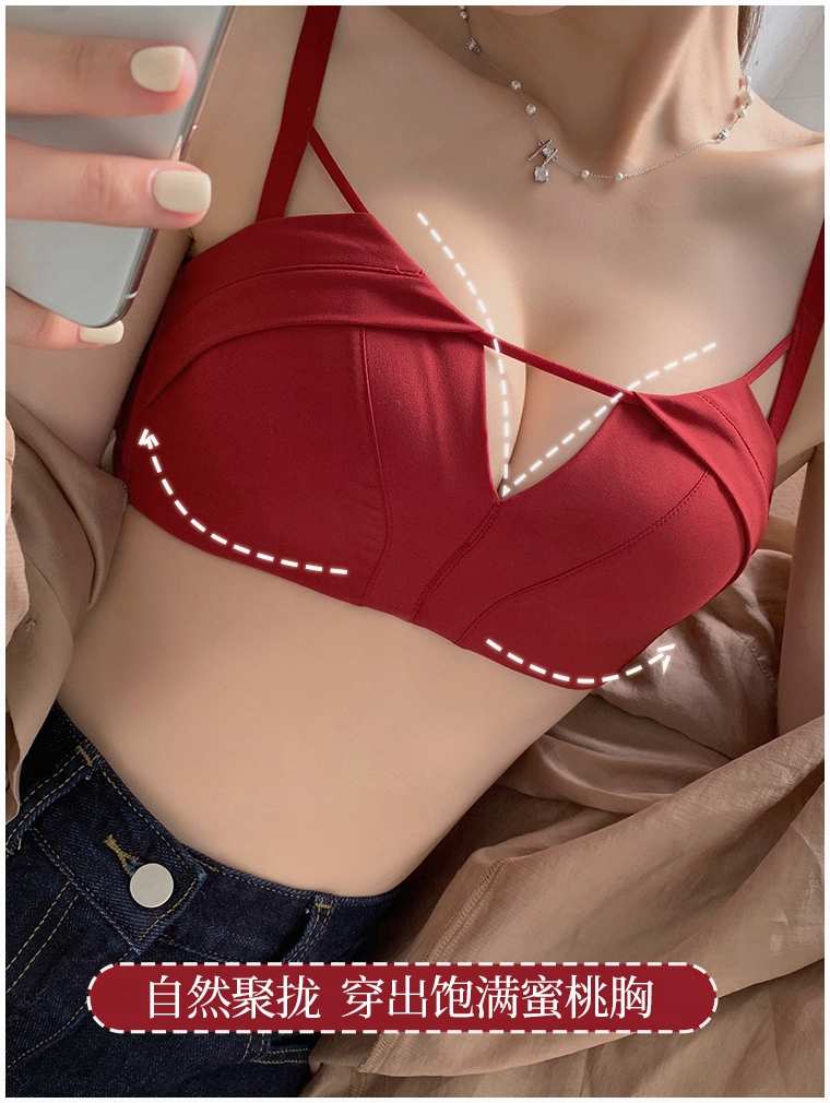 This Life Year Without Marks Underwear Women Small Breasts Coalless Steel Ring Wedding Red Bra Thin sexy bra suit