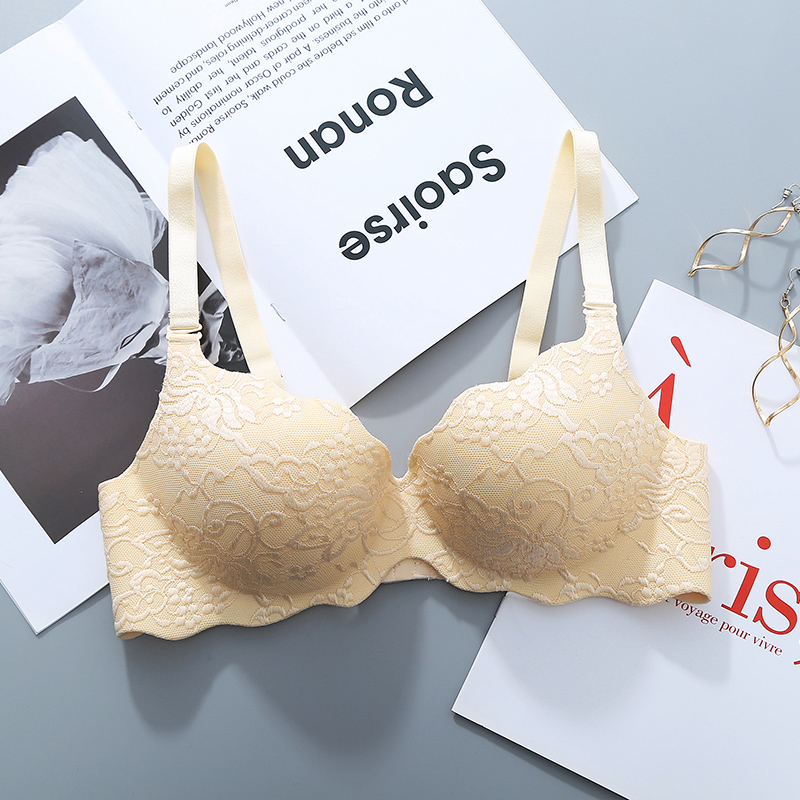 White Lace Lingerie Ladies Sexy One Piece Seamless Push Up Bra Summer Thin Comfortable Steel Ring Bra