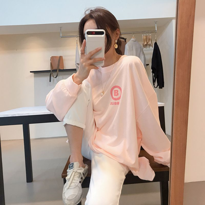 Spring Loaded Loose bf Lazy Wind Pink T-shirt Woman Long Sleeve Student Letters Printed in Long version of the undershirt
