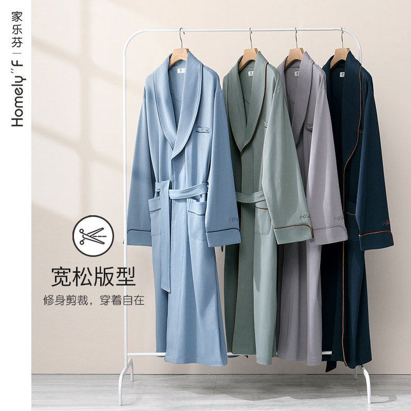 Sleeping robe men's sleepwear men's clothes men's bathrobes spring and autumn pure cotton long sleeves in full cotton long version of thin and large size