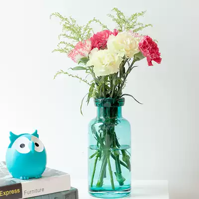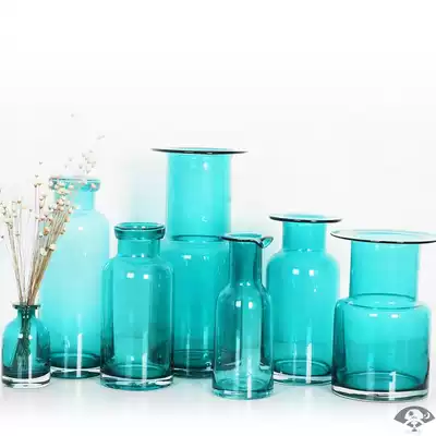 American country literature fresh simple blue glass vase transparent dry flower hydroponic plant container