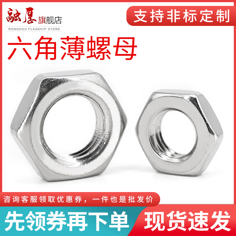 304 304 stainless steel nut flat hexagonal thin screw nut locking screw cap M6M8M10M12M16M18M22M64