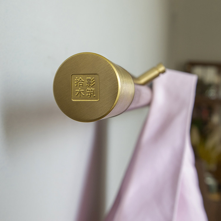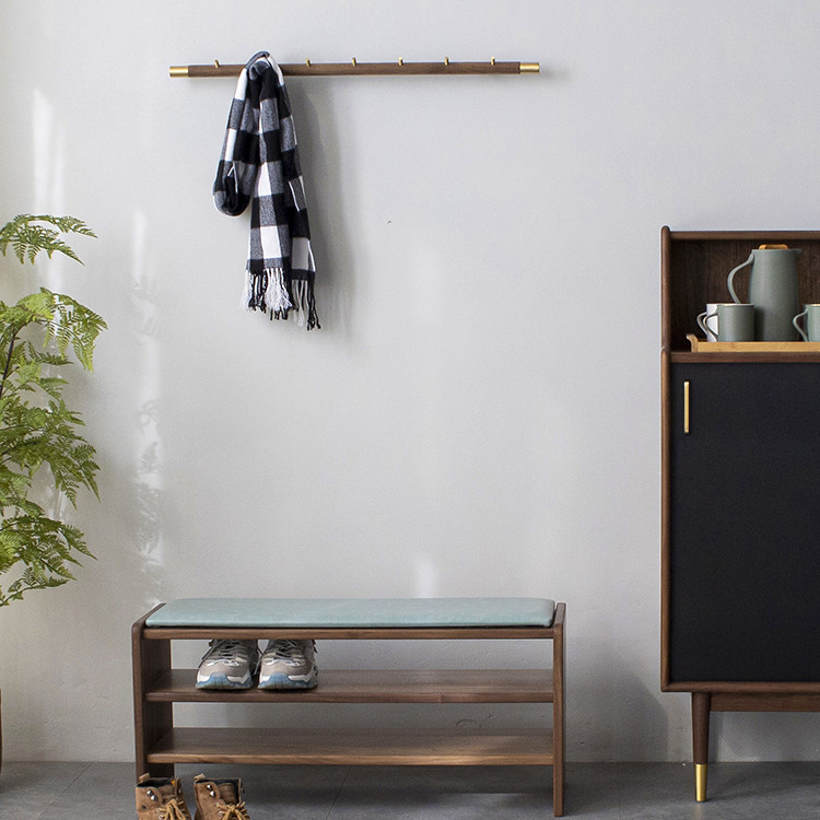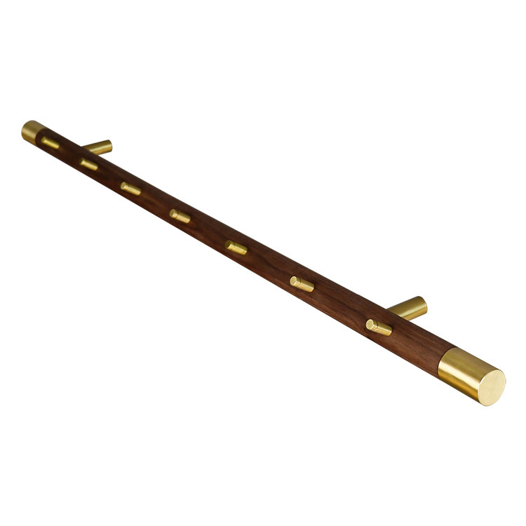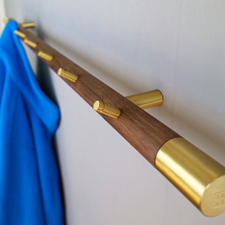 Pick up wooden North European coat rack Japanese solid wood simple black wall wall hanging brass hook