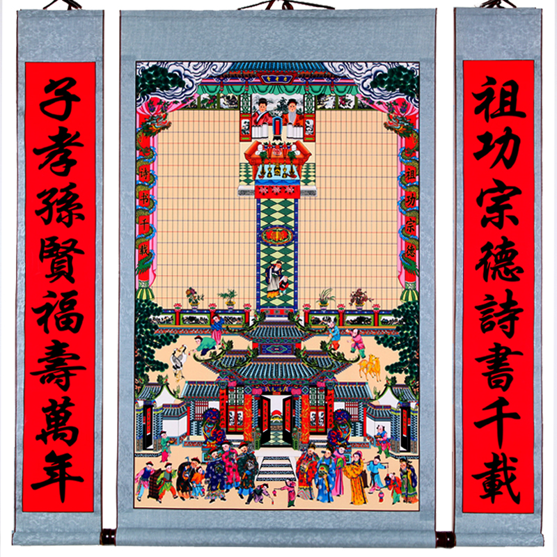 New Year's Eve dedicated to the ancestors' family tree hanging painting fabric scroll-style family hall axe family tree genealogy genealogy chart lineage antique painting