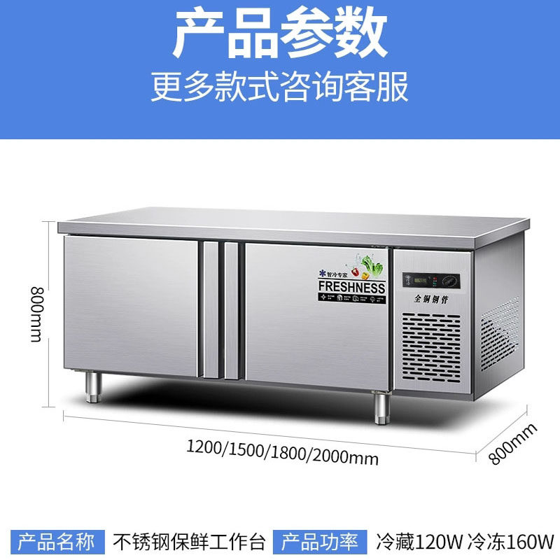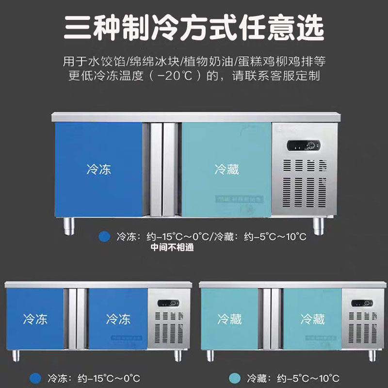 Stainless Steel Refrigerated Bench Commercial Chilled Flat Cold Preservation Milk Tea Operation Table Horizontal Ice Cabinet Double Warm Fridge