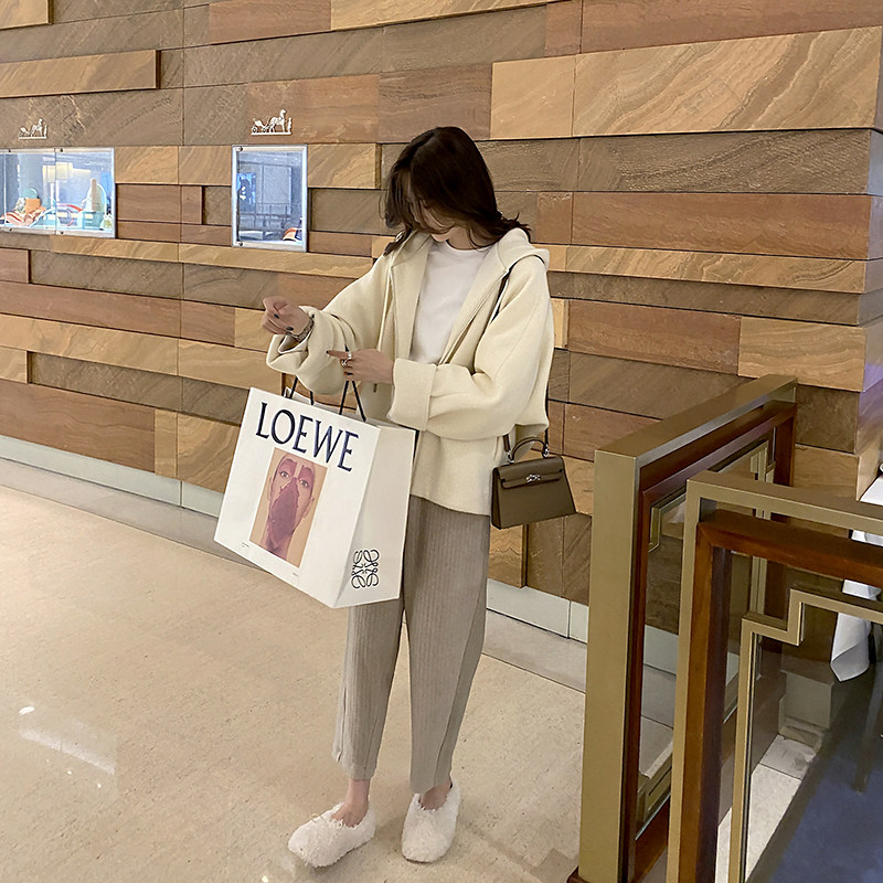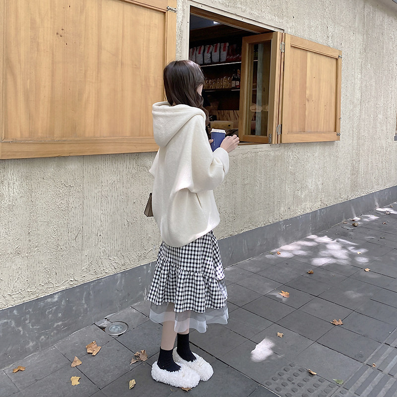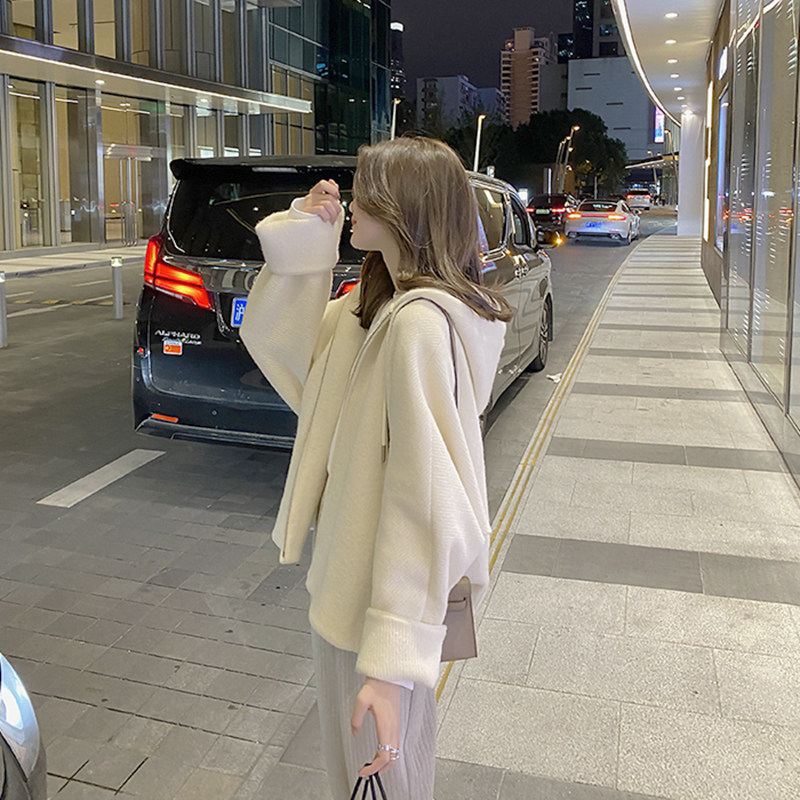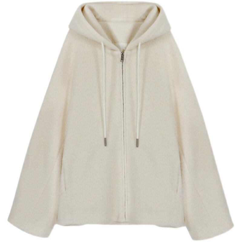 Mularsa white connected hat sportswomen thicken 2022 early spring Korean version loose with lazy wind 100 hitch coat