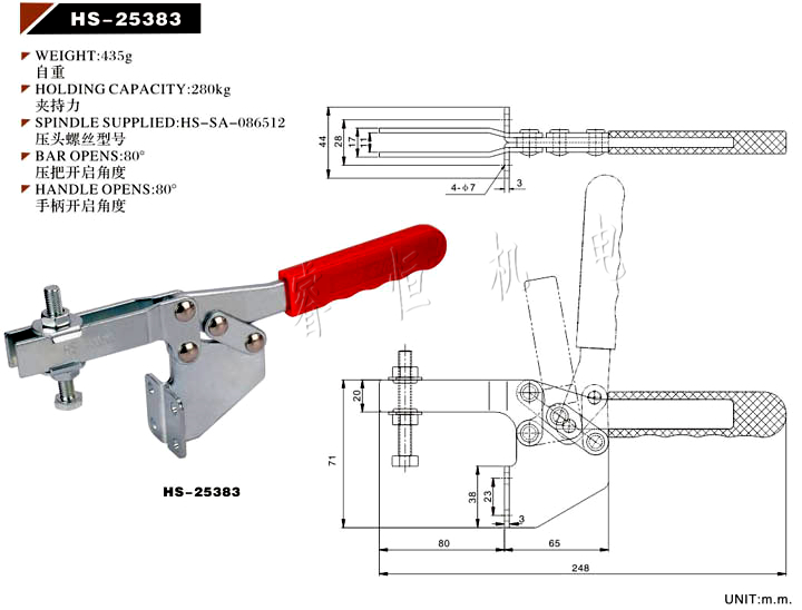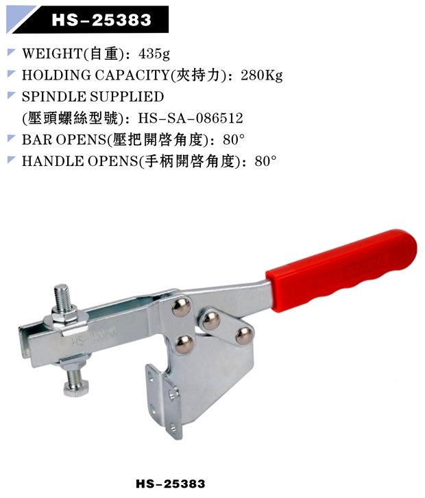 Taiwan good hand horizontal quick clamp HS-25383 quick clamp elbow clamp tooling inspection fixture clamp