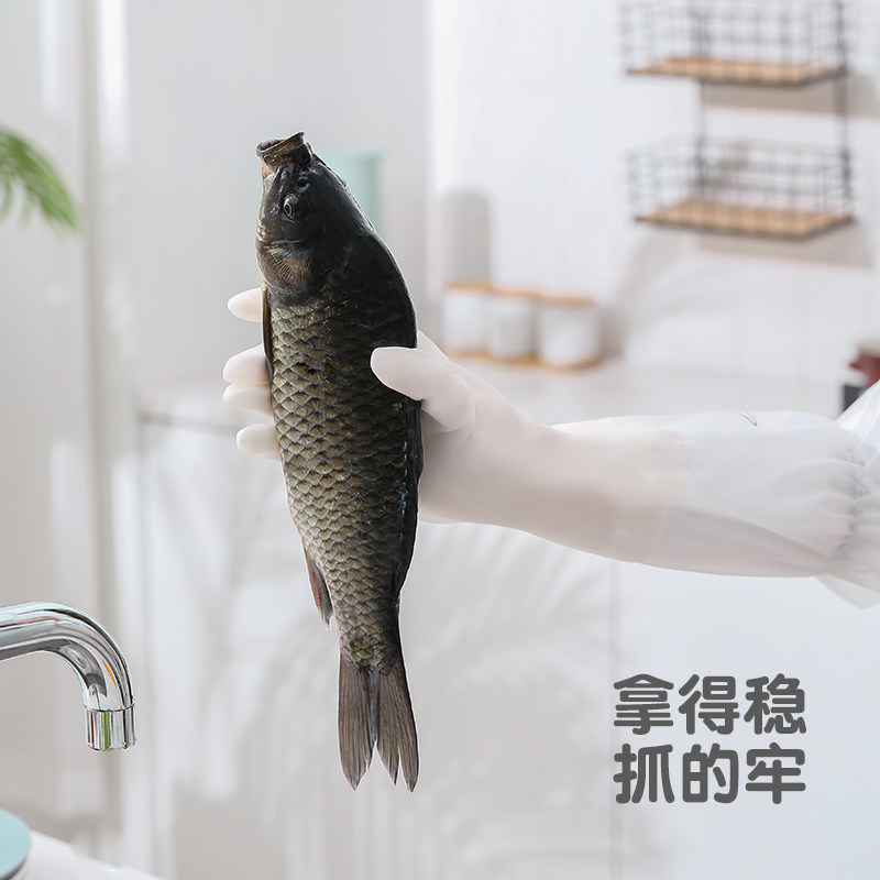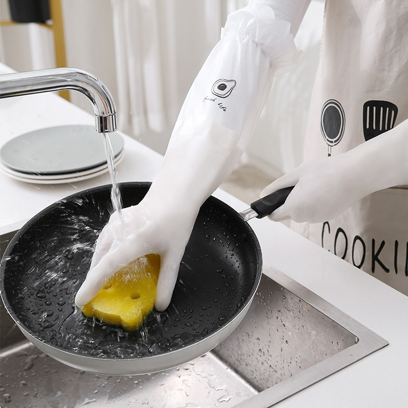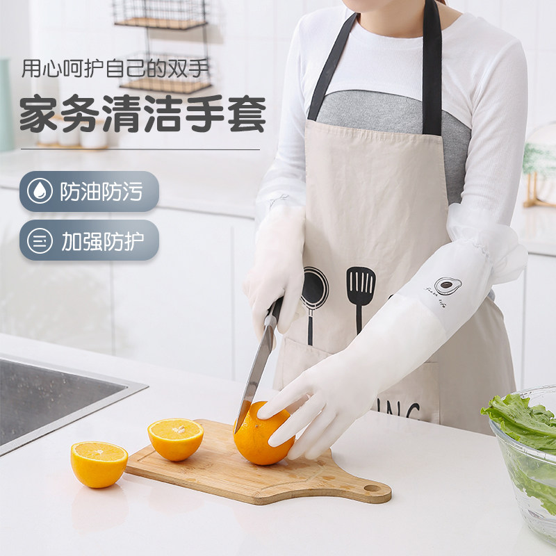 Washing dishes gloves female thickened waterproof and durable household kitchen housework winter plus velvet buns laundry rubber leather
