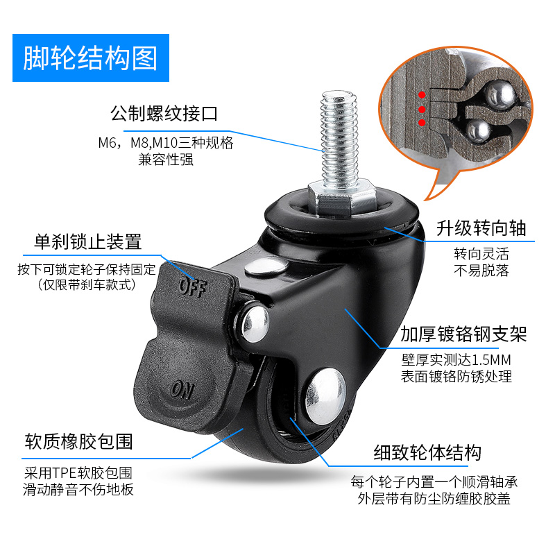 Black Steering Wheel Pulley Rubber Universal Small Wheels 2 Inch Furniture Wire Rod Universal Wheels 1 Inch Small Silent Castors
