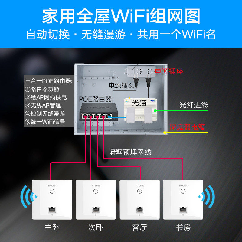 TPLINK Gigabit 86 type wall router network socket whole house wifi coverage set wireless ap panel
