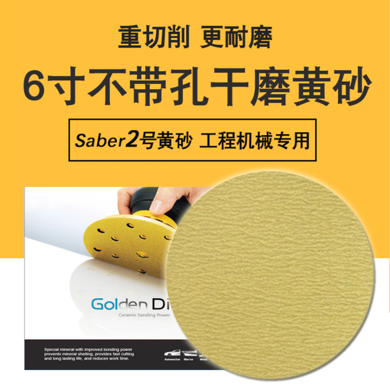 Instrument Song Yellow Sand High Cutting Force 6 Inch 6 Holes Dry Frosted Paper Yellow Flocking Sandpaper 6 Inch Without Hole Sandpaper