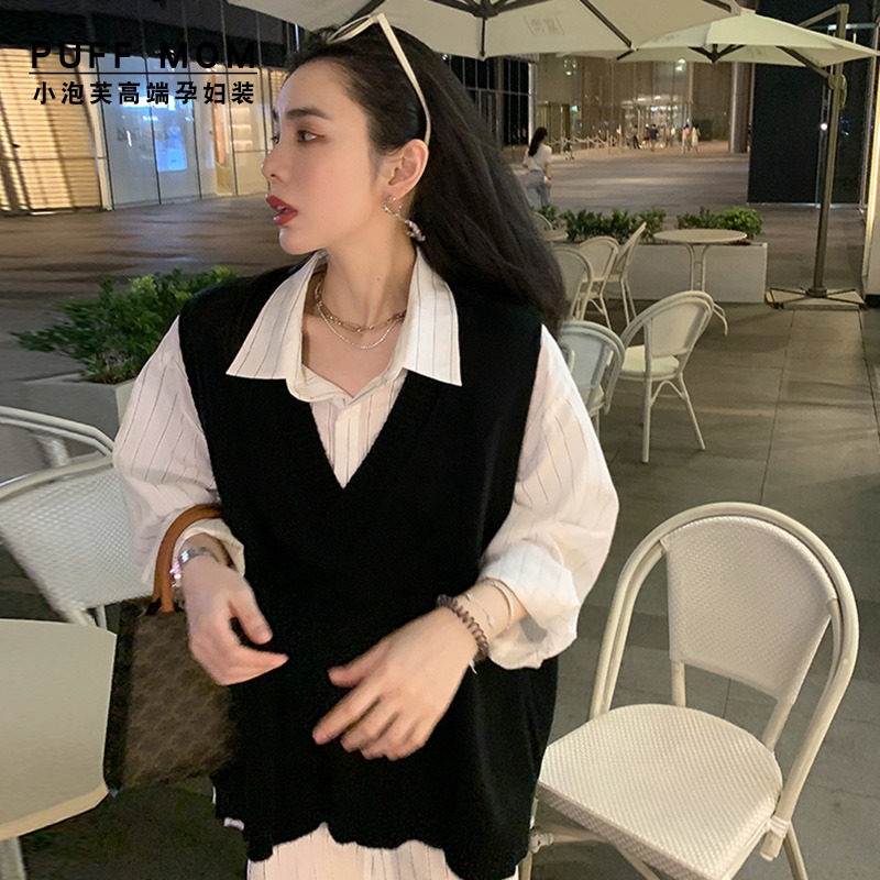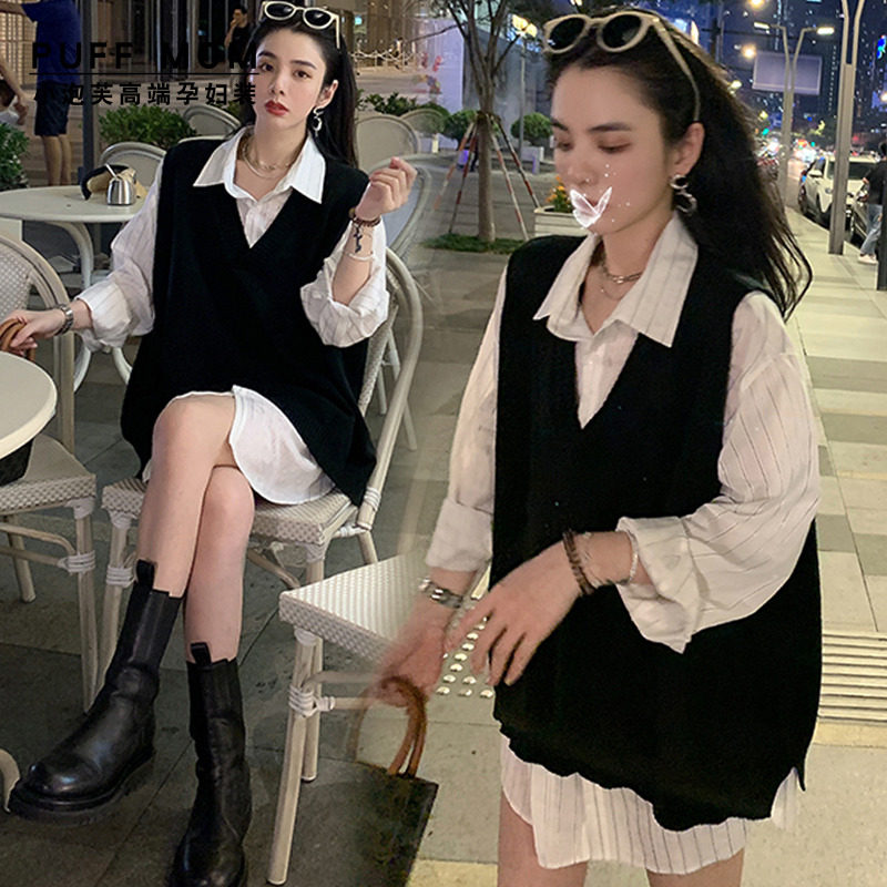 Pregnant Woman Spring Dress Shirt Style Foreign Dress Suit Spring Autumn New Casual Net Red Blouse Women Out Fashion Models Two Sets